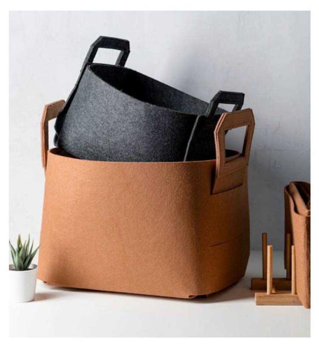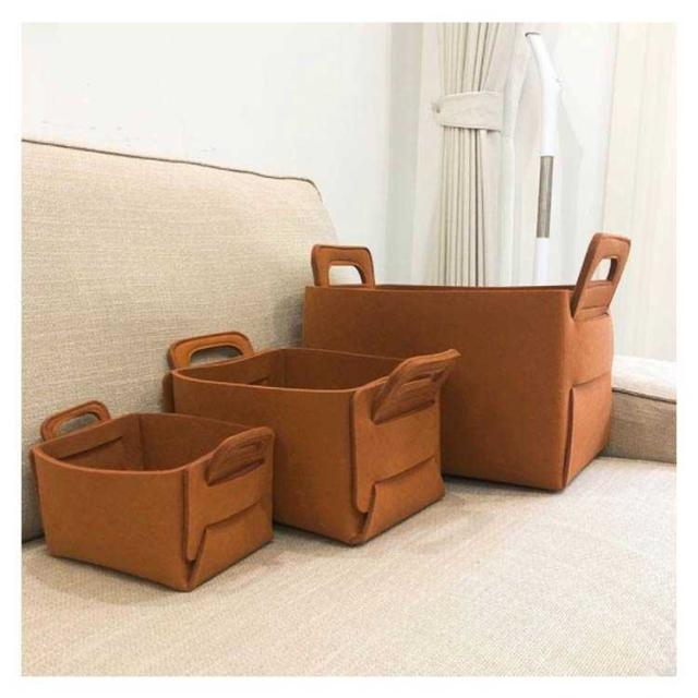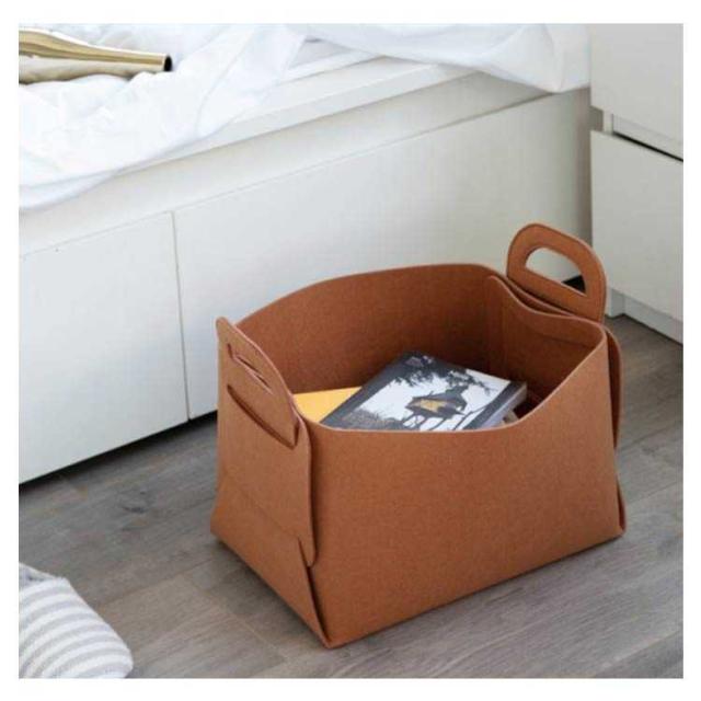 | 【商品名】フェルトバスケット 【素材】フェルト生地 【サイズ】展開時:S(18*13*11cm) M(25*18*15cm) L(36*25*23cm) XL(36*28*25cm) 【特徴】雑貨・リモコン・小物からおもちゃ、食品ストック、雑誌などなんでもバサッとたっぷり収納。フェルト生地は、中に収納したものを衝撃から保護する役割があります。硬いものを収納する場合、フェルトなので床を傷つけないのも嬉しいポイントです。インテリアに馴染むブラウンとダークグレーの2色を部屋に置いて、おしゃれに収納。使わない時は折り畳んでコンパクトに。 | |
