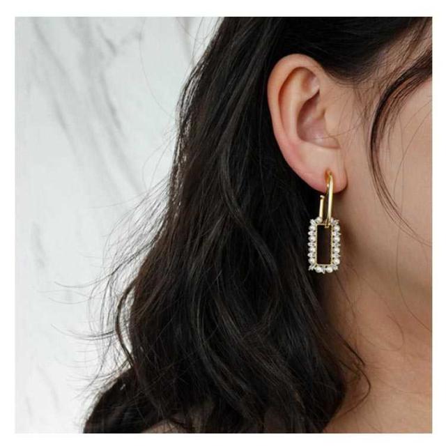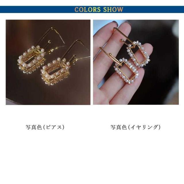 イヤリング フックピアス パール パール 結婚式 ピアス ノンホール ピアス イヤリング レディース ノンホール ピアス 痛くない イヤーカフ アクセサリー パーティー フェミニン スクエア