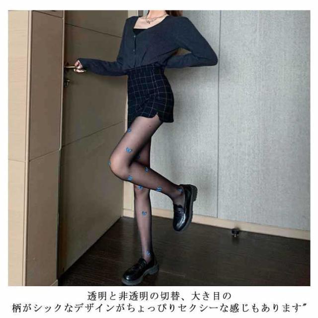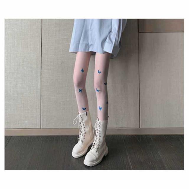 | 足元をより雰囲気満々なアンティーク蝶柄ストッキング♪ 透明と非透明の切替、大き目の柄がシックなデザインがちょっぴりセクシーな感じもあります | |