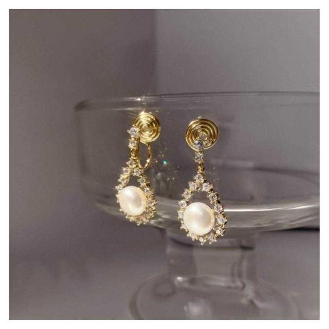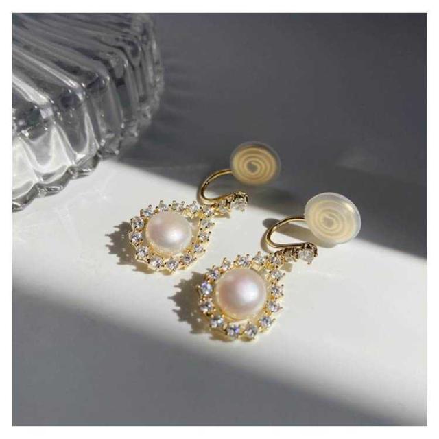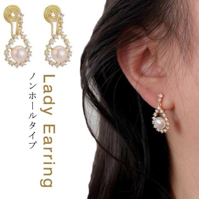ノンホールピアス イヤリング イヤリング ピアス ノンホール 挟むだけ パール 痛くない ノンホール ピアス 大粒パール パール イヤリング イヤーカフ アクセサリー パーティー フェミニン 痛くない