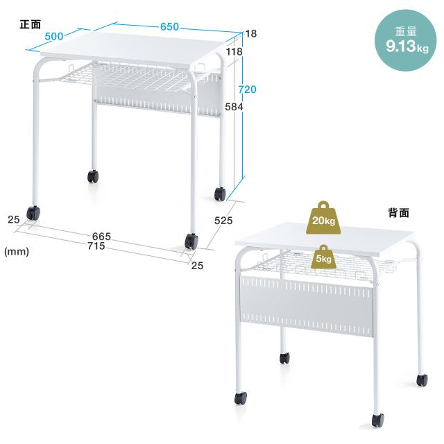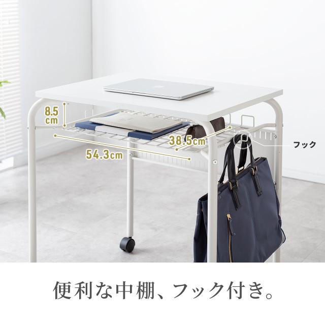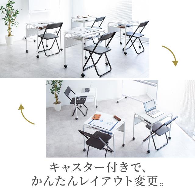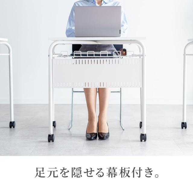 スタッキングデスク 研修デスク サブデスク キャスター付きデスク 中棚付き フック付き 幕板 天板幅65cm 奥行50cm ホワイト[100-DESKF056W]