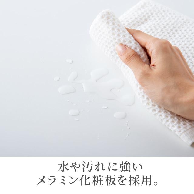 ●水や汚れに強いメラミン化粧板を採用しています。