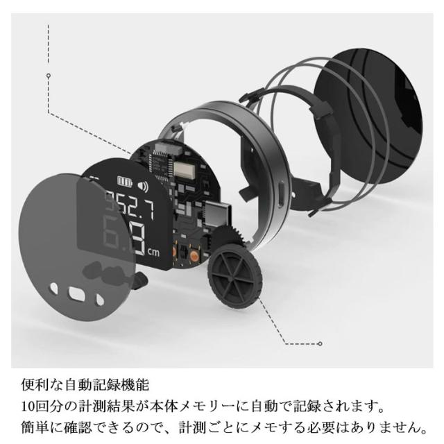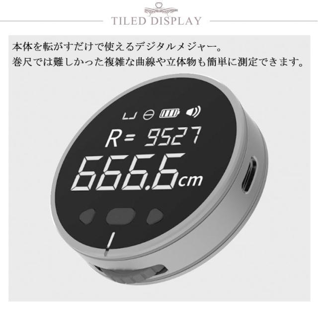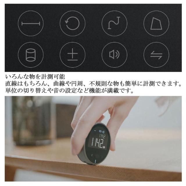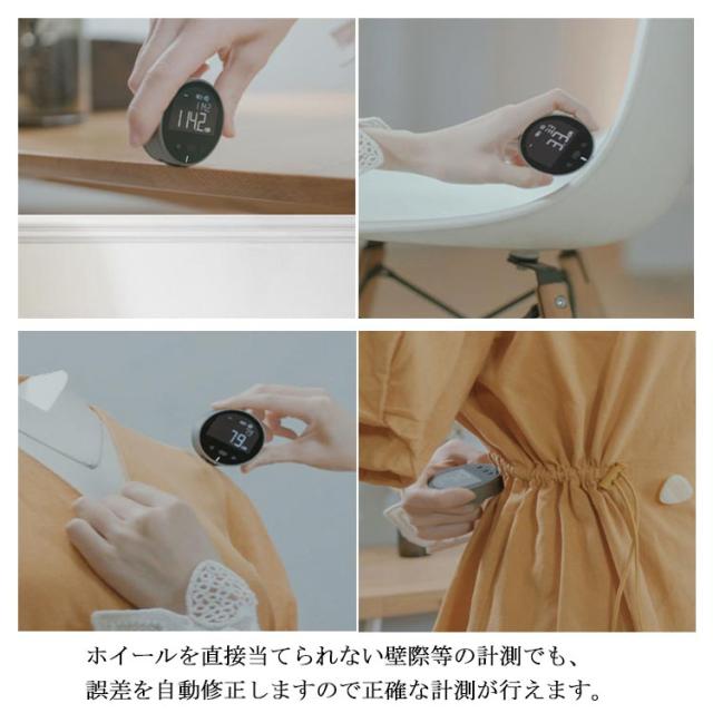 | 転がすだけで簡単計測 本体を転がすだけで使えるデジタルメジャー。巻尺では難しかった複雑な曲線や立体物も簡単に測定できます。 いろんな物を計測可能 直線はもちろん、曲線や円周、不規則な物も簡単に計測できます。単位の切り替えや音の設定など機能が満載です。 一目でわかるディスプレイ 計測結果は視認性を重視した本体ディスプレイに表示。バックライト搭載で暗い場所でも利用可能です。 便利な自動記録機能 10回分の計測結果が本体メモリーに自動で記録されます。簡単に確認できるので、計測ごとにメモする必要はありません。 壁際でも誤差を自動修正 ホイールを直接当てられない壁際等の計測でも、誤差を自動修正しますので正確な計測が行えます。 USB充電式 本体はバッテリー内蔵のUSB充電タイプです。 | |