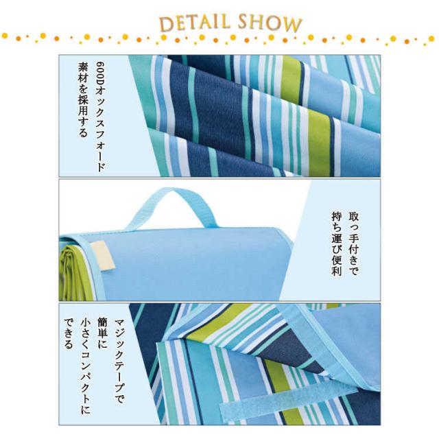 | 折りたたんで持ち運びが楽な145cm×200cmサイズのレジャーシートです。 大人2人が寝転がれるワイドサイズ! 4〜6人サイズのビッグな広々レジャーシートです。 広げてワイド、折りたたんでマジックテープで留めるだけで簡単にコンパクト収納できます。 取っ手付きなので持ち運びも楽々♪ おでかけが楽しくなるようなカラーバリエーションでプレゼントにもオススメ。 | |