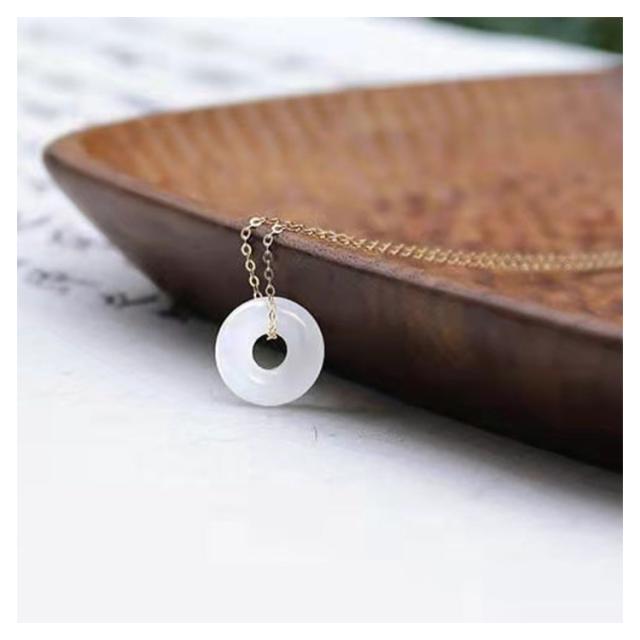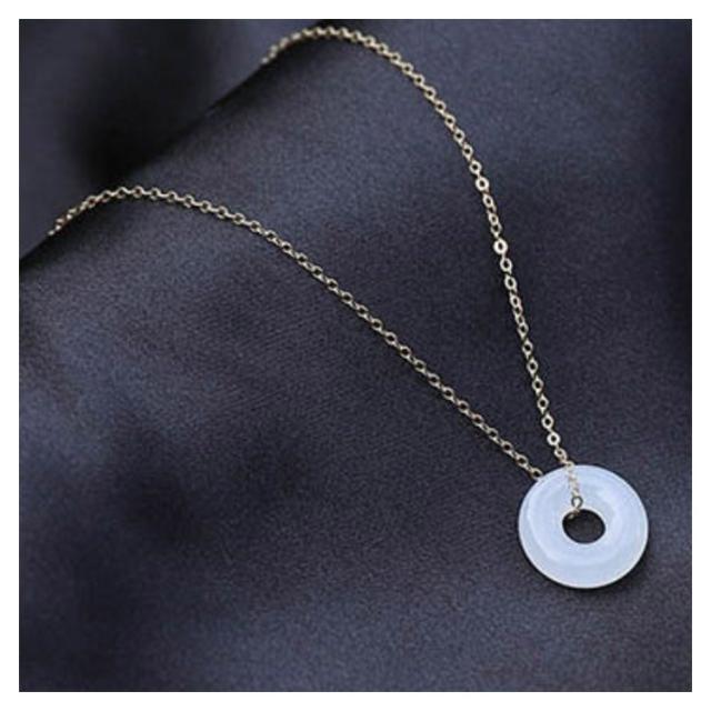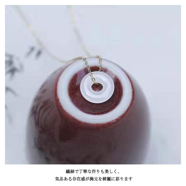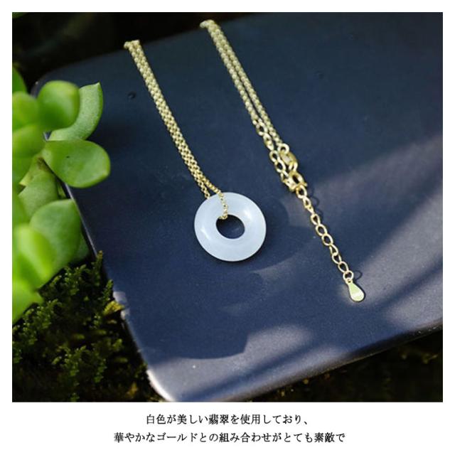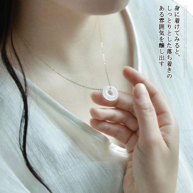 | 身に着けてみると、しっとりとした落ち着きのある雰囲気を醸し出す。 大人の女性に相応しい上質な天然石が肌を美しく見せ、しっくりと馴染みます。 白色が美しい翡翠を使用しており、華やかなゴールドとの組み合わせがとても素敵です。 繊細で丁寧な作りも美しく、気品ある存在感が胸元を綺麗に彩ります。 チェーンは金属アレルギーを起こしにくいステンレスを使用しており、金属アレルギーの方でも安心してご利用いただけます。 | |