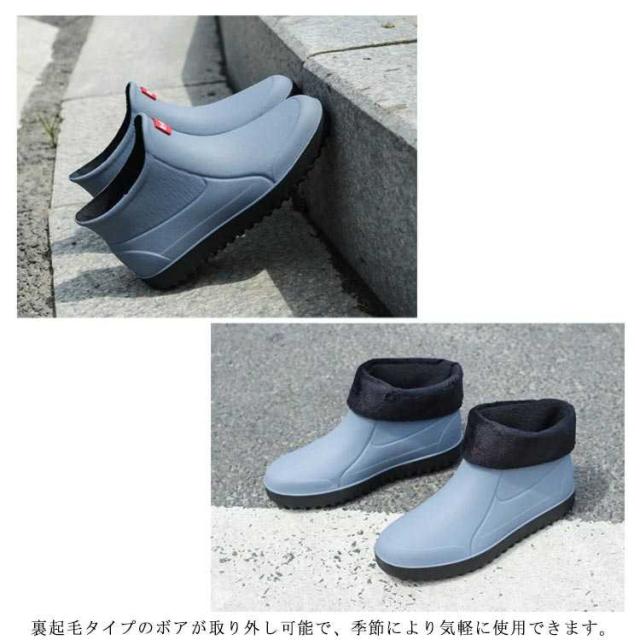 | 雨や雪の日でも安心!しっかり防水できるレインブーツ 超軽量シューズなので長時間歩行でも安心、素足の感覚に限りなく近づけた超軽量シューズです。 高級PVC素材を採用して、柔らかくて、歩きやすい。 一体成型なので、雨が入る心配がありません。 靴底は特殊加工によって濡れた場所でもグリップ力を発揮スリップ防止、耐摩擦性を実現しました。 裏起毛タイプのボアが取り外し可能で、季節により気軽に使用できます。 | |