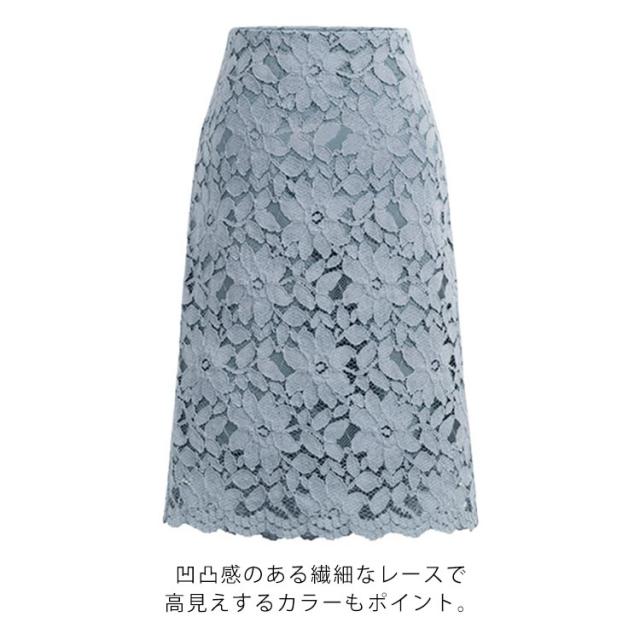 | フェミニンな総レースのタイトスカート。 裏地付きで透ける心配もありません。 凹凸感のある繊細なレースで高見えするカラーもポイント。 きちんと感を演出する上品なレーススカートはビジネスシーンやカジュアルにも使える優秀アイテム。 | |