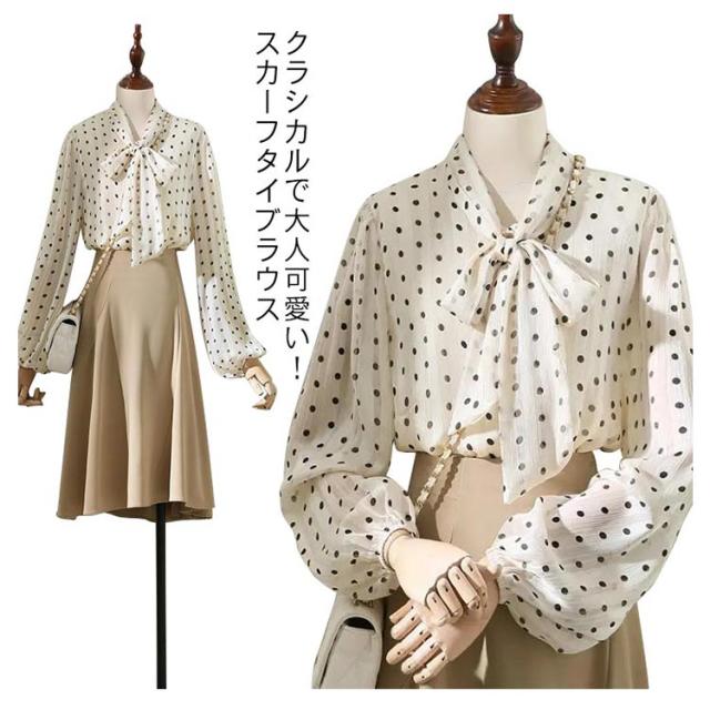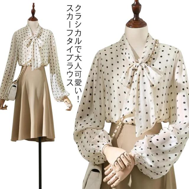 | クラシカルで大人可愛い!スカーフタイブラウス。 落ち着いた色合いと胸元のスカーフタイが大人っぽい印象のブラウス。 一枚着としてはもちろん、ジャケットのインナーでも使えるので、 オフィスではもちろんデニムあわせでカジュアルコーディネートも◎ ウェーブ体型の方にオススメのブラウスです♪ | |