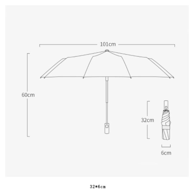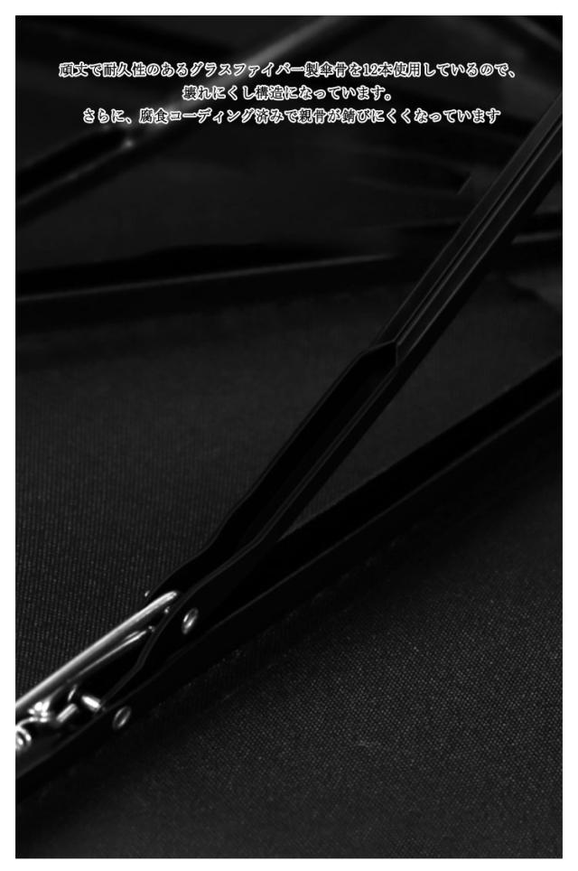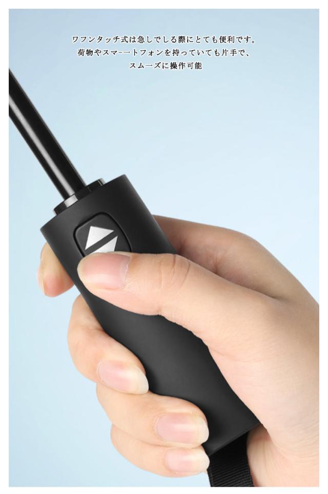 | ワンタッチで自動開閉 ワフンタッチ式は急しでしる際にとても便利です。荷物やスマ-一トフォンを持っていても片手で、スム一ズに操作可能。 12本骨強風にあおられても安心 頑丈で耐久性のあるグラスファイバ一製傘骨を12本使用しているので、壊れにくし構造になっています。さらに、腐食コ一ディング済みで親骨が錆びにくくなっています。 もし強風で反り返っても、開閉ボタンをブッシュすれば元通り!強風にあおられても安心。 長しい持ち手 雨に濡れても滑りにくいのがボイント。 高撥水力生地には、210Tクロスに高撥水テフロン加工が施されしいるため、雨粒を綺麗に弾きます。一振りで雨粒をほとんど落とせます。 | |