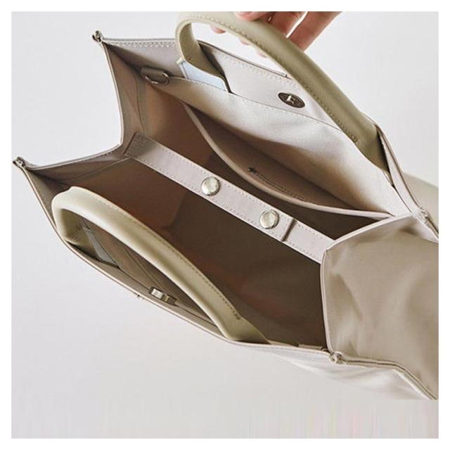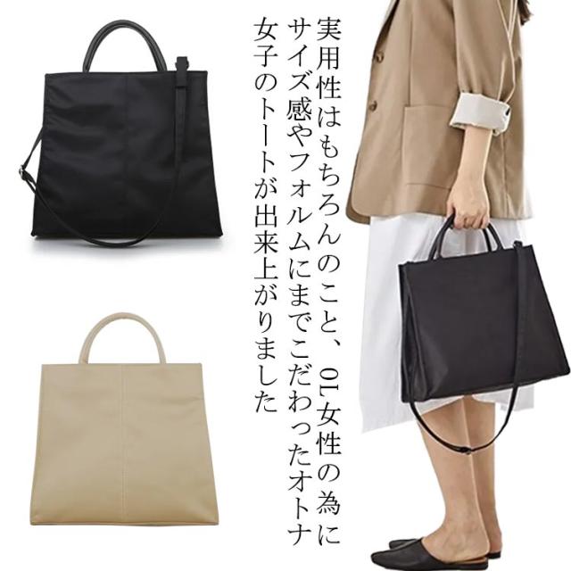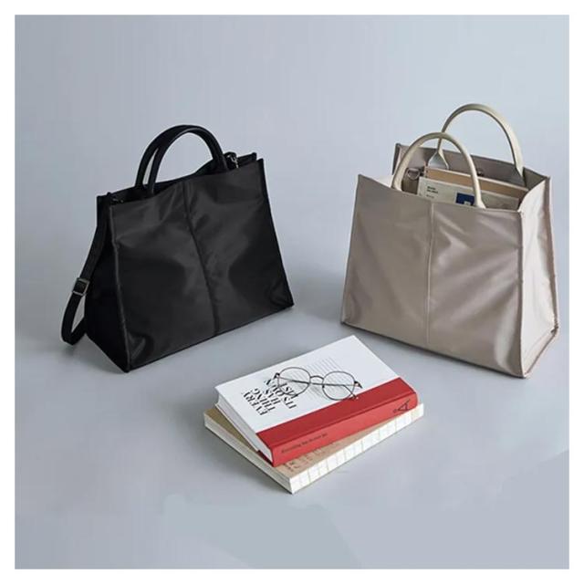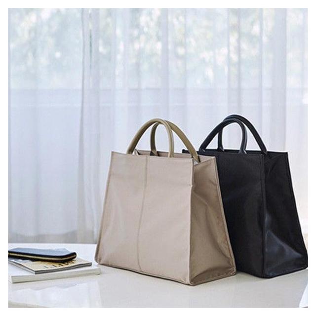 ナイロン トートバッグ A4 自立 大容量 シンプル 韓国 通勤バッグ 大人 レディース 軽量 OL 無地 ハンドバッグ おしゃれ 撥水 ショルダーバッグ マグネット 革ハンドル ブラック 黒 ベージュ