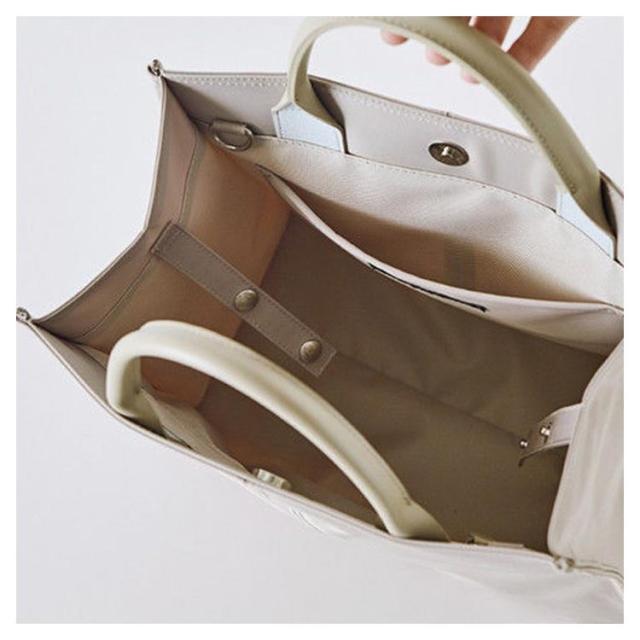 | 実用性はもちろんのこと、OL女性の為にサイズ感やフォルムにまでこだわったオトナ女子のトートが出来上がりました。 メイン素材は、厚みのある上質なナイロン素材を使用。常に握るハンドル部分には、丈夫な合皮を使用。 メイン収納はマグネット仕様になっているので中のものが落ちる心配もありません。 マチが広い作りなので、見た目以上に容量が入ります 無駄な飾りをつけず、オトナの女性でも持てるシンプルで上品なスタイルを楽しめます。 | |