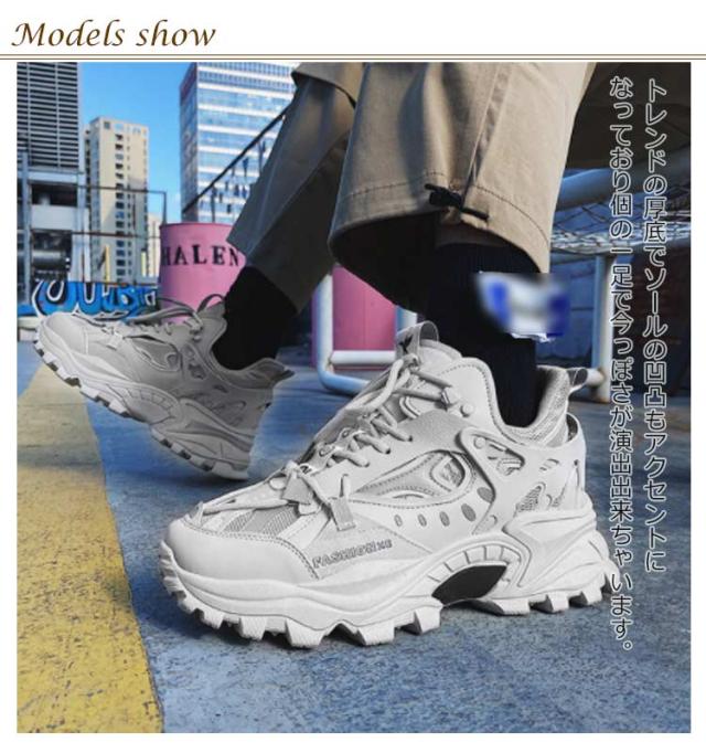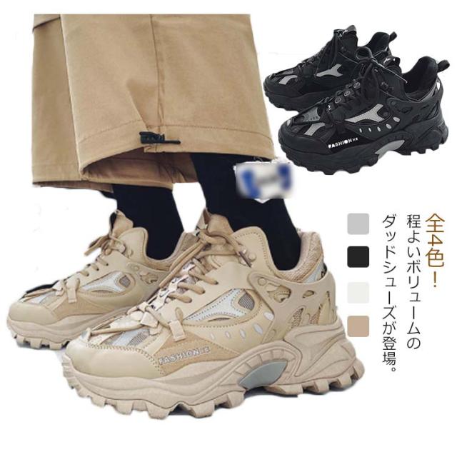 スニーカー ダッドスニーカー 厚底 メンズ レディース 靴 厚底シューズ ローカット シューズ ダット スニーカー 歩きやすい 軽量 スポーツ ランニング ウォーキング シューズ 24.5cm-27cm レースアップ 凹凸厚底 美