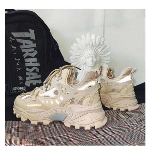 | 全4色!程よいボリュームの ダッドシューズが登場。 トレンドの厚底でソールの凹凸もアクセントになっており個の一足で今っぽさが演出出来ちゃいます。 光に反射するリフレクター付き!暗い夜の街でも安心♪ 厚底のため足に負担が低く、足長効果も期待できます。 履くだけでオシャレにしてくれる1足。 | |