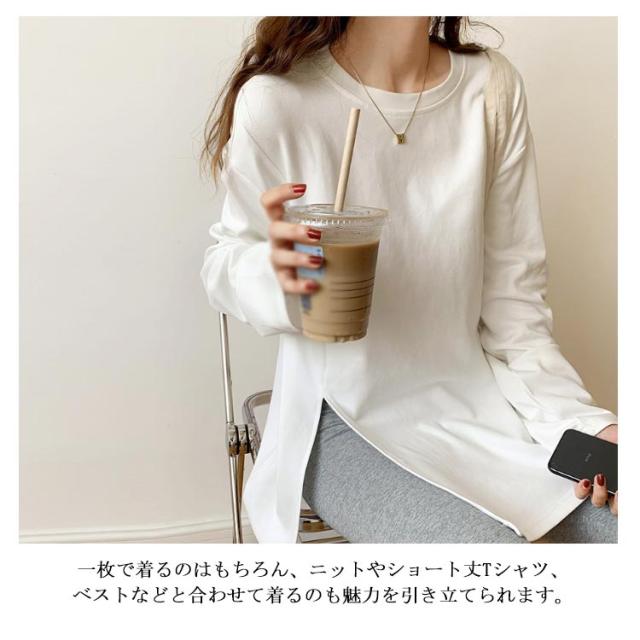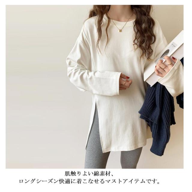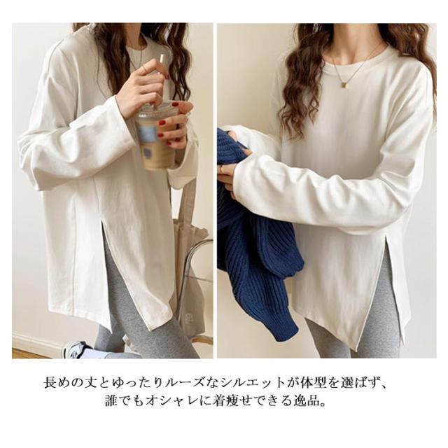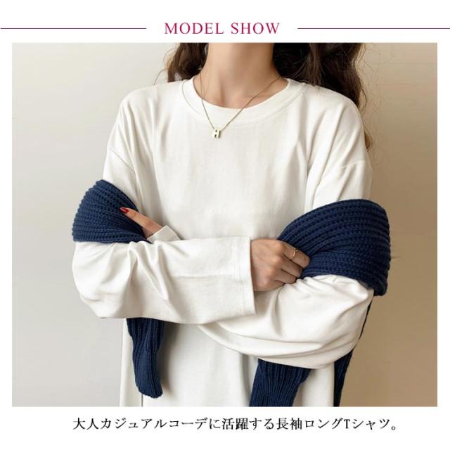 | サイドスリットでスタイルアップ♪ 大人カジュアルコーデに活躍する長袖ロングTシャツ。 長めの丈とゆったりルーズなシルエットが体型を選ばず、誰でもオシャレに着痩せできる逸品。 一枚で着るのはもちろん、ニットやショート丈Tシャツ、ベストなどと合わせて着るのも魅力を引き立てられます。 肌触りよい綿素材、ロングシーズン快適に着こなせるマストアイテムです。 | |