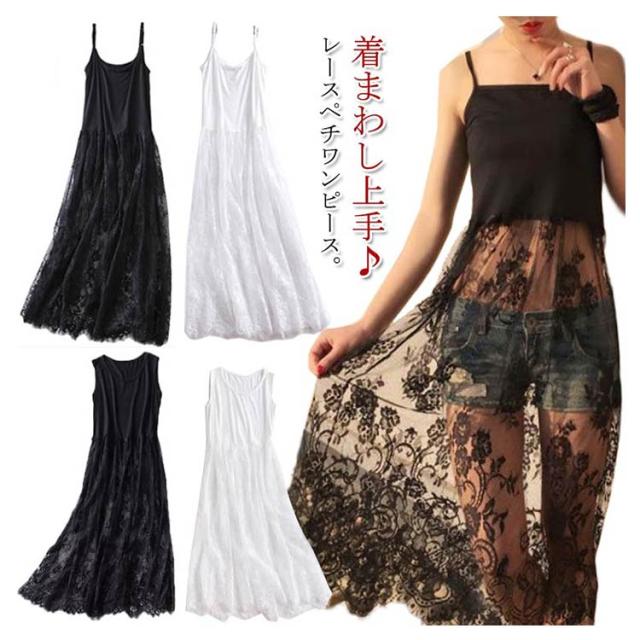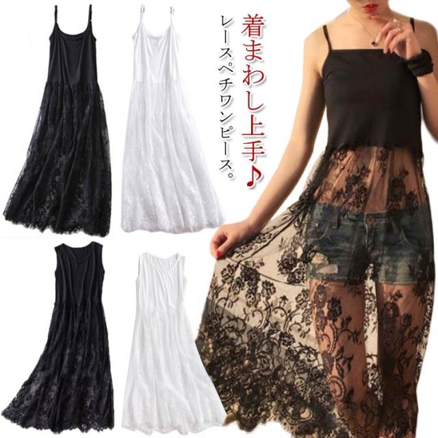 インナーワンピース ペチコート 大きサイズ レースワンピース レディース 送料無料 マキシワンピ チュール タンクワンピース 白 重ね着
