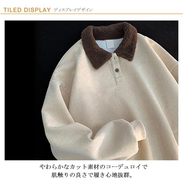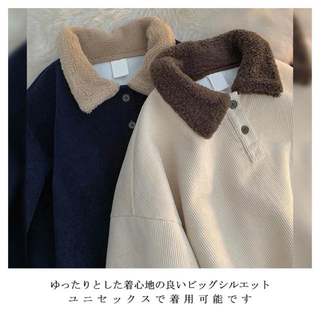 やや厚手 襟付き パーカー トレーナー スウェット 裏起毛 メンズ 無地 ボア襟 レディース ゆったり 紺 コーデュロイ ネイビー 微起毛 ライトベージュ 春 秋冬 ハーフボタン ユニセックス 配色