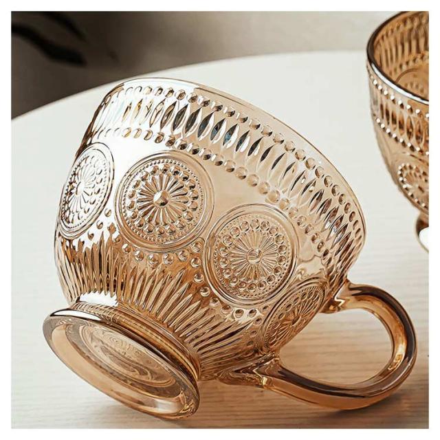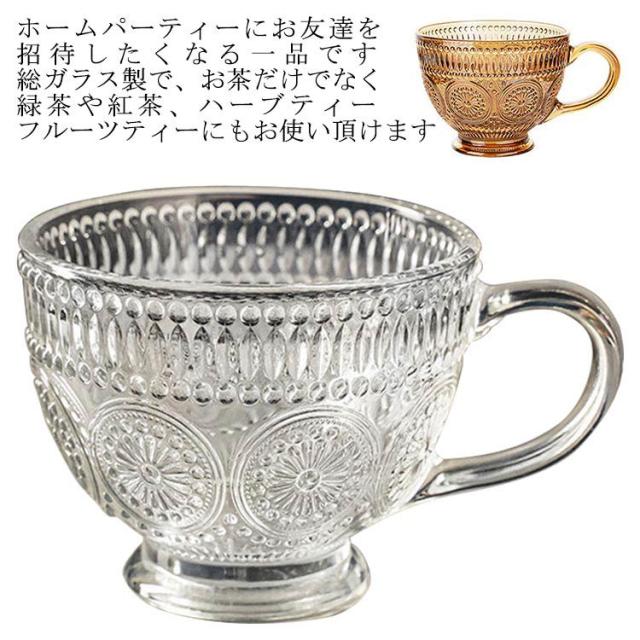ガラスコップ 湯呑み コーヒーカップ 耐熱マグカップ 耐熱 ガラス カフェマグ マグカップ 花柄 2個セット 食洗機対応 クリア 北欧 優雅 取手付き 茶色 華やか 透明 華奢 耐熱ガラス