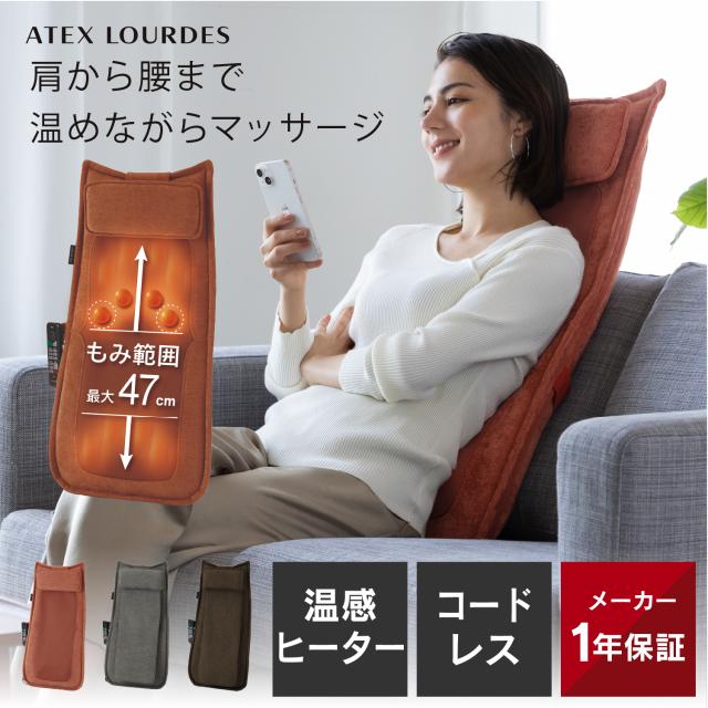(アテックス公式) 全国送料無料本格マッサージャーにコードレスの利便性をプラス。もみ範囲上下最大47cmのハイバック型マッサージャー。コードレスだから場所を選ばず、いつでもどこでも使えます。