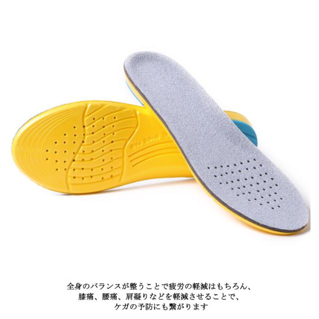 | 人体工学に基づいた設計により、足裏全体のバランスを整え、身体や骨格を理想的 姿勢に導きます。全身のバランスが整うことで疲労の軽減はもちろん、膝痛、腰痛、肩凝り どを軽減させることで、ケガの予防にも繋がります。 こん 方にオススメ 立ち仕事や通勤、ランに ングやウォ一キング、サイクリング どのスポ-一ツ?アウトドアで効果を発揮し、担を分散する設計で足の疲れを和らげケアします。 蒸れを防いで通気穴で蒸れずに使える インソ一ル本体に通気口を設けることで蒸れを防ぎます。靴の中が蒸れにく るので、快適にお使いいただくことが可能です。 低反発素材のふくらみにより足にしっかりとフィツト 低反発素材のふ らみにより足にしっかりとフィツトし足への負担を軽減して 。 サイズ調整自由自在! 八サミで簡単にカットすることができるので、ご愛用のスニ一カ一やブ一ツ どに合わせた微調整が可能です。 | |