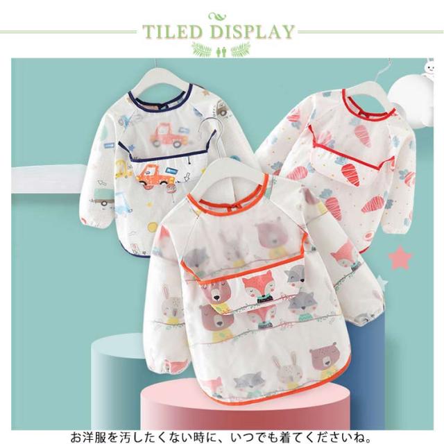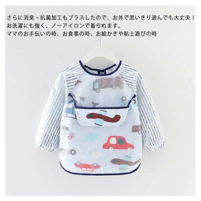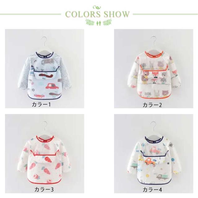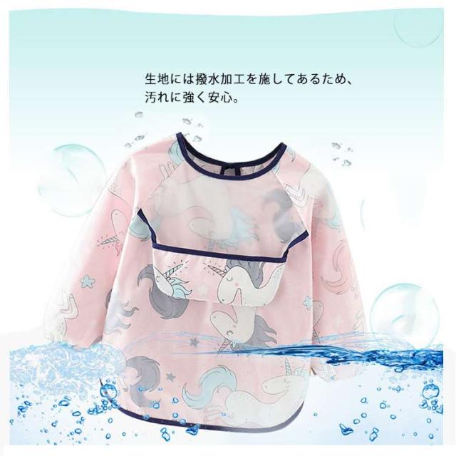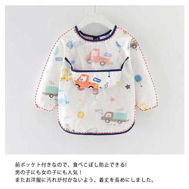 お食事エプロン 防水 キッズ スモック 幼稚園 赤ちゃん 離乳食エプロン 幼児 防水エプロン ベビー プルオーバー 長袖スモック 子供服 ロングスモック 子ども 食べこぼし防止 ロングタイプ ベビーエプロン 前ポッケト付き・食べこぼし防止!