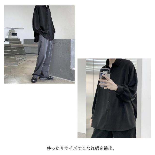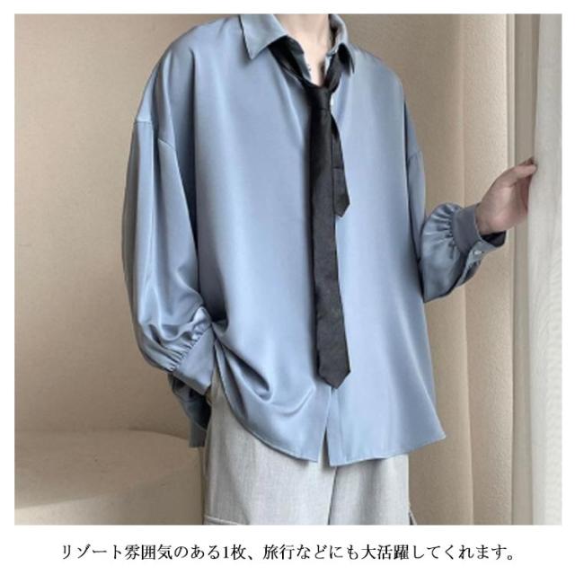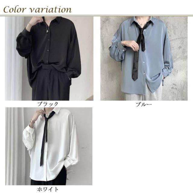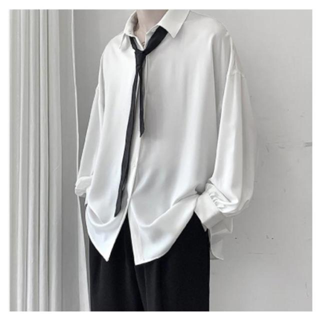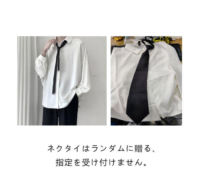 ゆったり カジュアルシャツ 長袖 シャツ 春 メンズ ビッグシルエット 秋 メンズ 無地 韓国ファッション ネクタイ付き 白シャツ おしゃれ ストリート 原宿系 モダン 大きいサイズ 黒 白 トップス