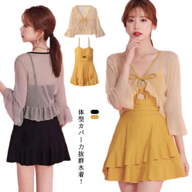 | 体型カバー力抜群水着! お腹をカバーできる3点セット水着登場! 気になる体型もフレアで可愛くカバー。 スカートがキュート! 女度もアガる! ハイウエストだからお腹から太ももまで隠せちゃう。 | |