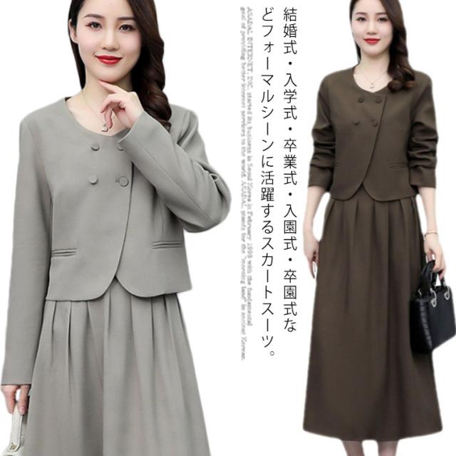 入学式 2点 卒業式 入園式 セットアップ 40代 レディース 母 卒園式 セレモニースーツ 30 ノーカラージャケット 七五三 ママスーツ