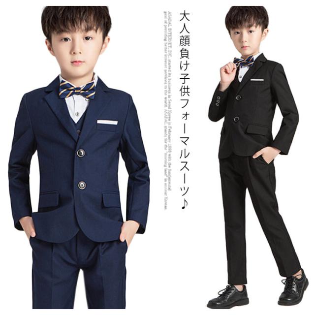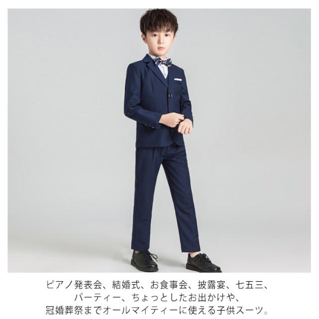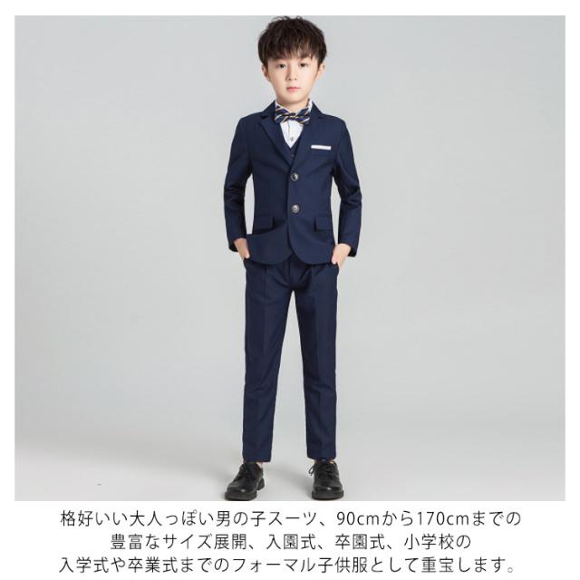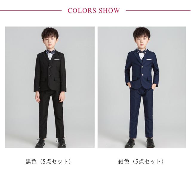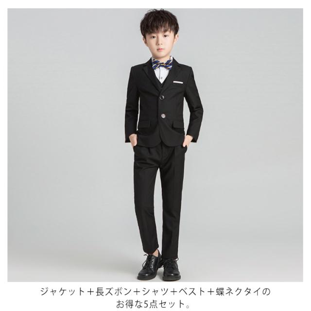 フォーマルスーツ 5点セット 90-170cm 卒園式 小学生 卒業式 男の子 子供服 入学式 入園式 ネイビー キッズ ジュニア セレモニー 冠婚葬祭 ブラック スーツ