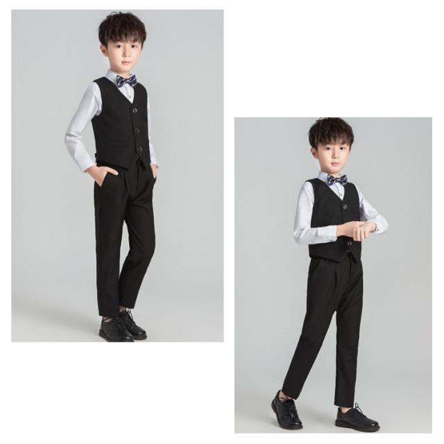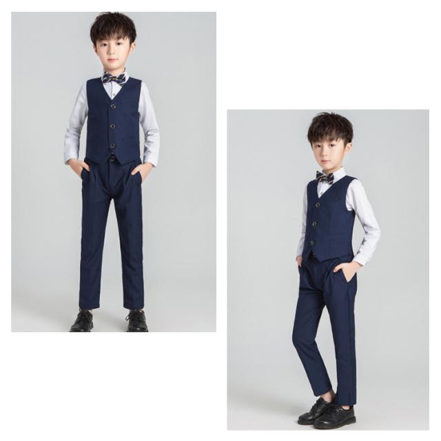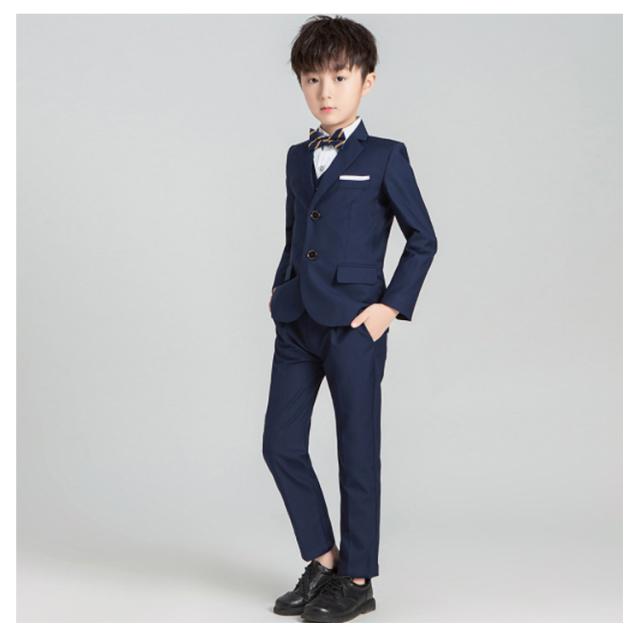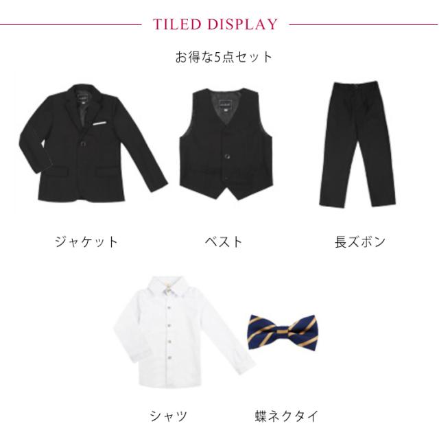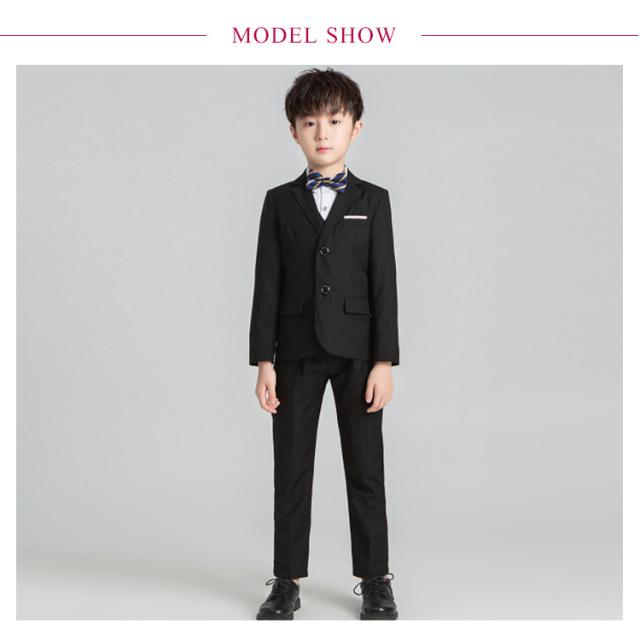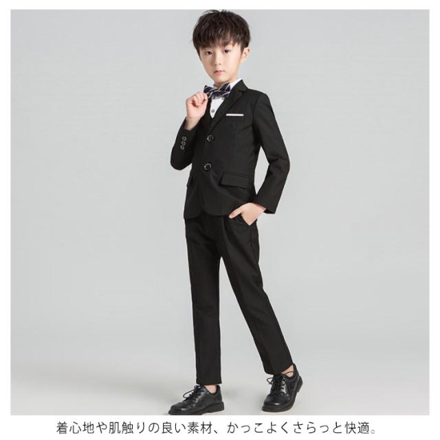 | 大人顔負け子供フォーマルスーツ♪ ジャケット+長ズボン+シャツ+ベスト+蝶ネクタイのお得な5点セット。 着心地や肌触りの良い素材、かっこよくさらっと快適。 格好いい大人っぽい男の子スーツ、90cmから170cmまでの豊富なサイズ展開、入園式、卒園式、小学校の入学式や卒業式までのフォーマル子供服として重宝します。 ピアノ発表会、結婚式、お食事会、披露宴、七五三、パーティー、ちょっとしたお出かけや、冠婚葬祭までオールマイティーに使える子供スーツ。 | |