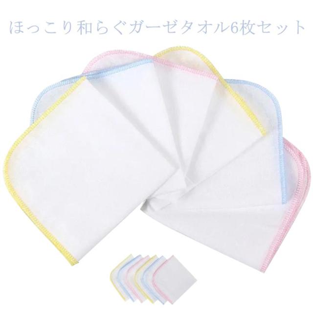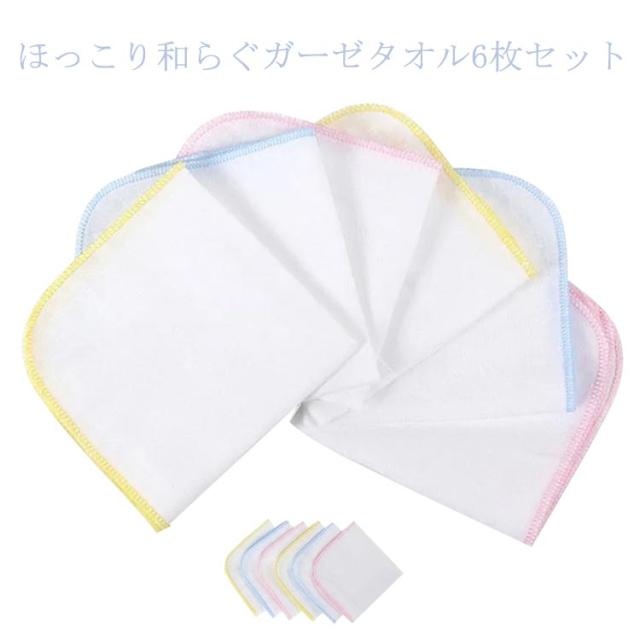 6枚セット ガーゼタオル ハンドタオル 無地 タオル ハンカチ ガーゼハンカチ 送料無料 タオルハンカチ ミニハンカチ ガーゼハンカチ ウォッシュタオル ふきん おしぼり セット ベビー 子供 大人 幼稚園 保育園 プチギフト 吸水 コンパクト ギフト