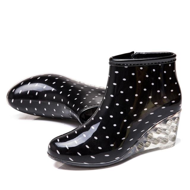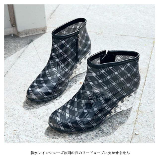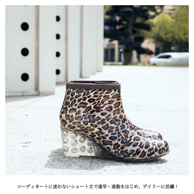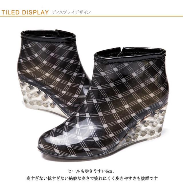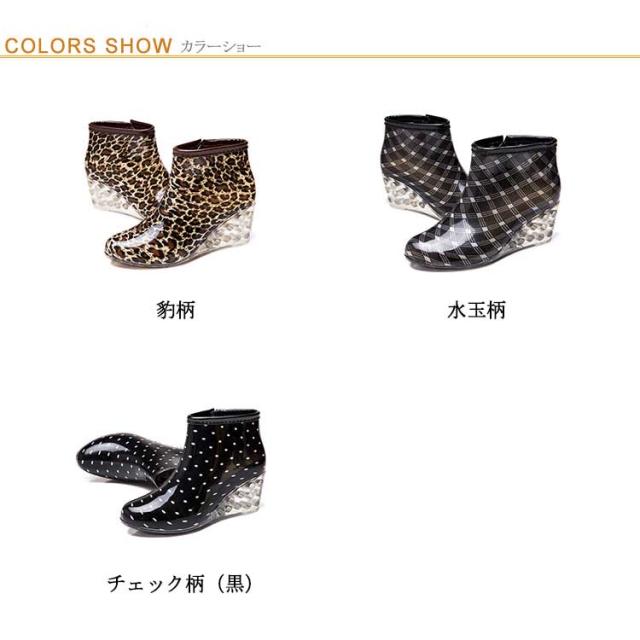 レインブーツ 6cmヒール レインシューズ ウェッジソール 防水 レディース 靴 雨 雪 梅雨 台風 痛くない ウェッジヒール 履きやすい 黒 ブラック 水玉柄 豹柄 チェック柄 6センチヒール オシャレ