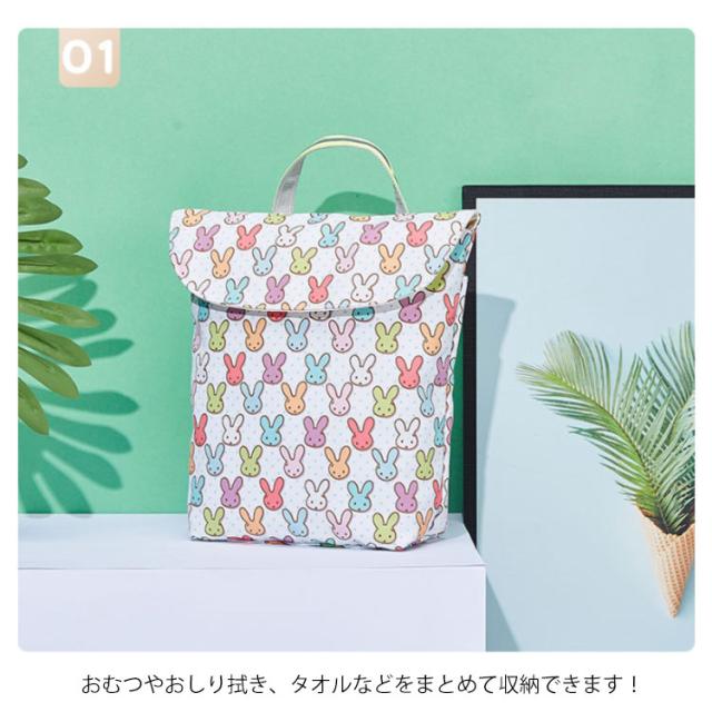 | 可愛いておしゃれなおむつバッグが登場です。 おむつやおしり拭き、タオルなどをまとめて収納できます! 持ち手が付いてますので、ちょっとしたお出かけの時などは、おむつ、おしりふき、スマホに財布を入れて、これ1つでお出かけできます。 おうちでは壁のフックなどに引っ掛けたり、ベビーカーに引っ掛けたりできて便利です。 Lサイズのおむつが6〜7枚入ります。 Sサイズのおむつが10枚入ります。 防水加工、洗濯を繰り返しても半永久的にその効果は持続します。 子どもっぽいデザインではないからおむつ卒業後はママバッグとして使えます! | |