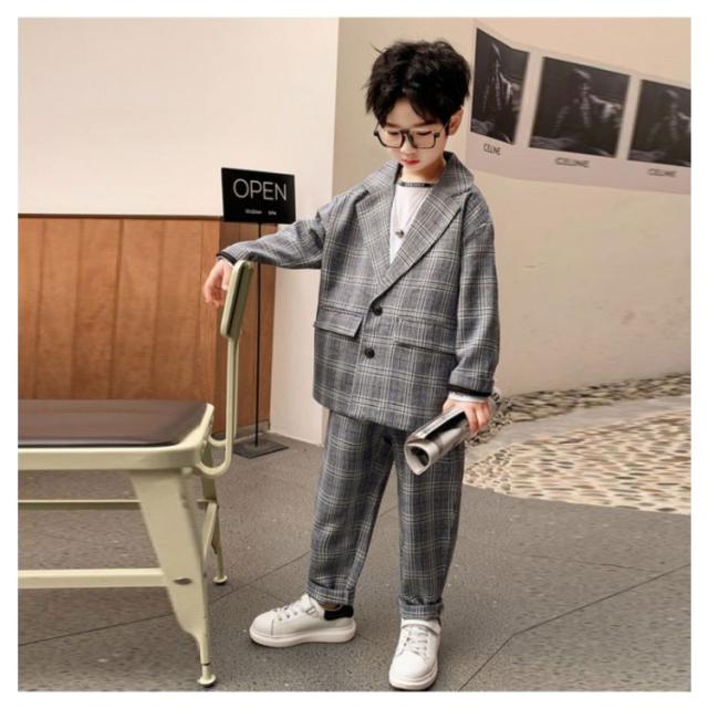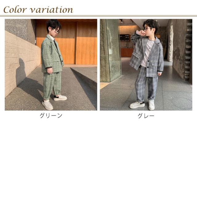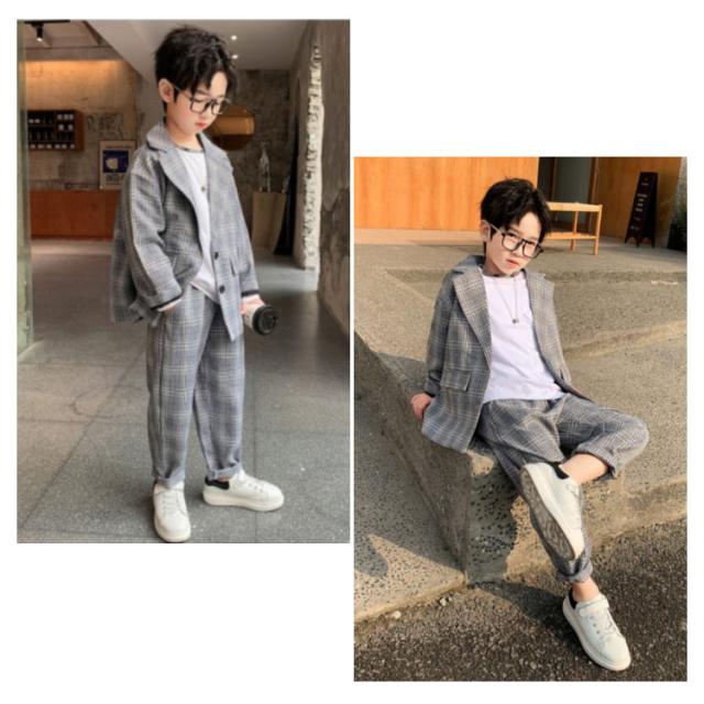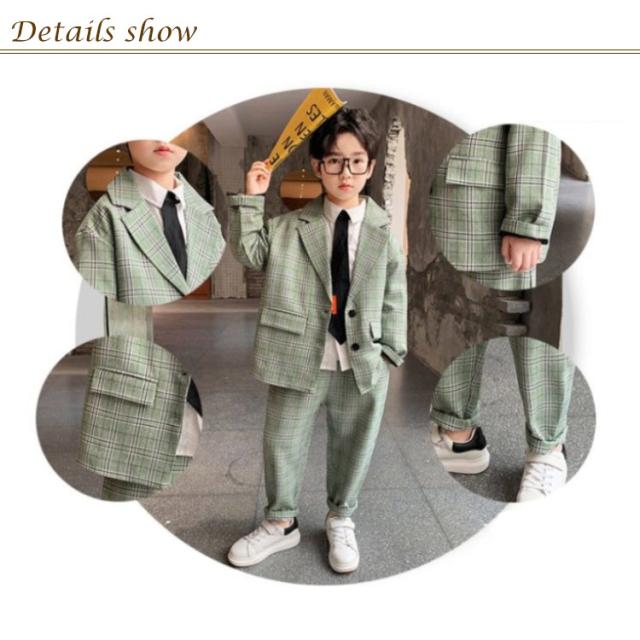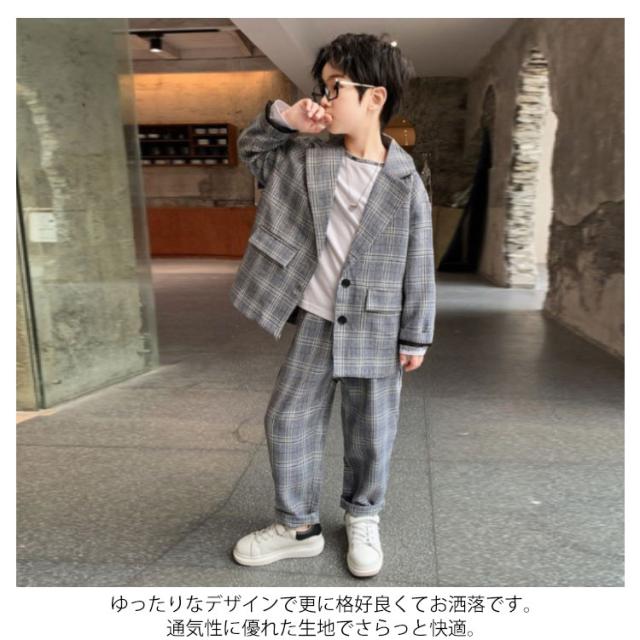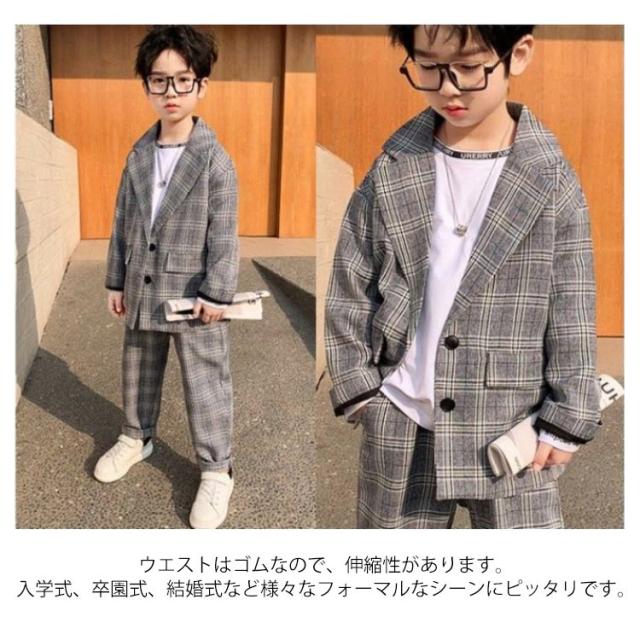 | 【2点セット】:ジャケット+パンツ 男の子の入学式フォーマルセットアップ。 ゆったりなデザインで更に格好良くてお洒落です。 シワになりにくい高品質な生地、ディテールまでこだわった上品さ溢れる逸品です。 通気性に優れた生地でさらっと快適。 ウエストはゴムなので、伸縮性があります。 定番なチェック柄、入学式、卒業式、結婚式など勿論です。通常着も最適合です。清楚な男の子コーデの完成です。 ベビーサイズからジュニアサイズまで展開、兄弟やお友達との揃いもとても素敵です。 入学式、卒園式、結婚式など様々なフォーマルなシーンにピッタリです。 | |