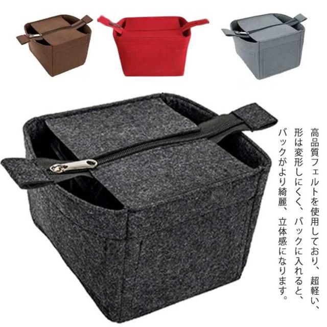 インナーバッグ キューブ型 バッグインバッグ 風 18/22/26 対応 フェルト ハンドバッグ 大きめ 小さめ 多機能 収納バッグ ファスナー付き 整理 軽量 軽い 自立 大容量 レディース メンズ 整理整頓