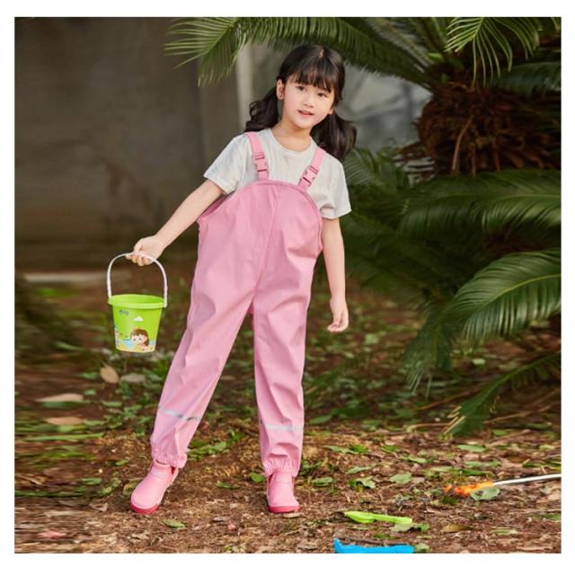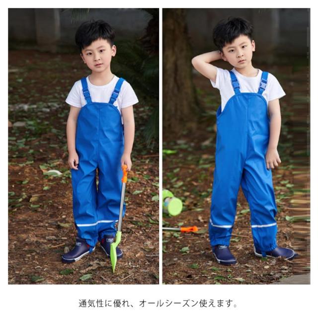 長ズボン お出かけ プレイウェア レインパンツ 砂場着 オーバーオール キッズ 子供雨具 子供服 サスペンダースタイル 透湿防水 表層PU 砂遊び 防酸性雨 サロペット 速乾反射テープ 安心 男女兼用 サイズ調整可 水遊び 通園 通学 遠足 レインかっぱ