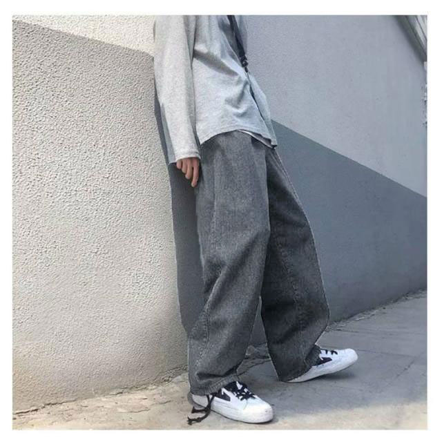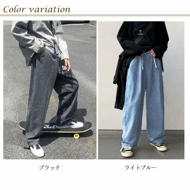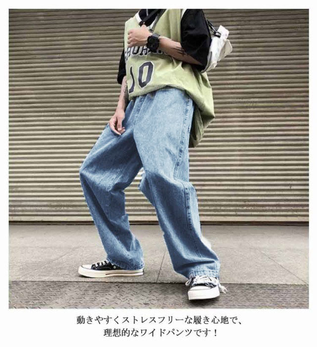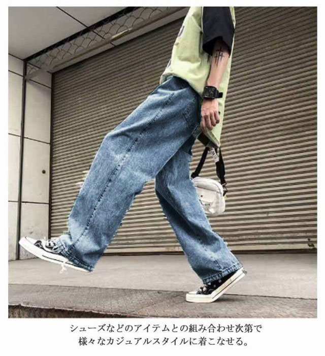 ワイドパンツ ジーンズ メンズ ボトムス 秋 デニムパンツ 春 デニムパンツ ロングパンツ 長ズボン 綿 ビッグシルエット ジーパン 韓国 ストレート パンツ ガウチョパンツ ルーズ 大きいサイズ デニム