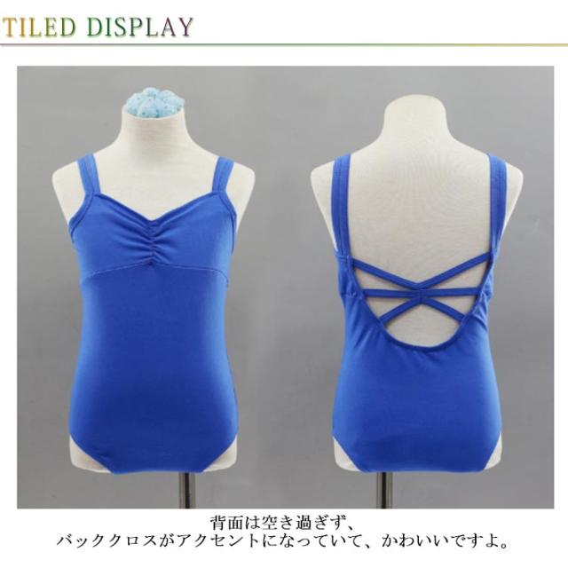 | バックのクロスが特徴のおしゃれなレオタードです。 サイズも豊富でお子様からジュニアまで安心して着用できます。 キャミソールタイプで前はシンプルで、使いやすいデザインです。 肩ひもが二本になっているので肩ひもがずれ落ちにくいのもポイント。 背面は空き過ぎず、バッククロスがアクセントになっていて、かわいいですよ。 ストレッチ素材なので着易くなっています。 | |