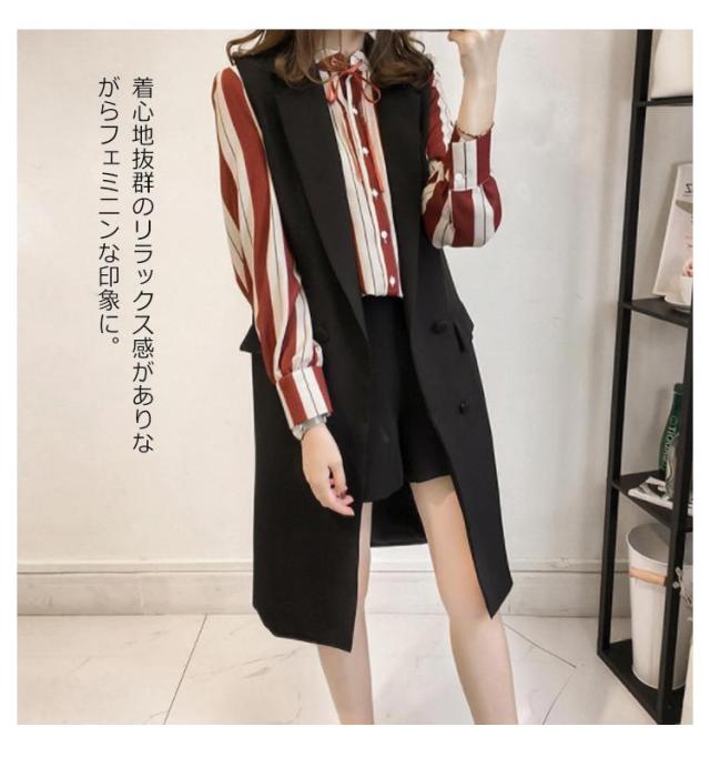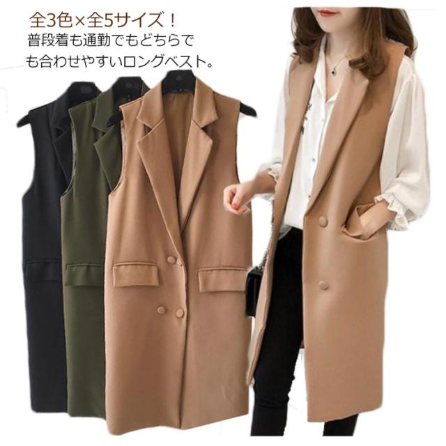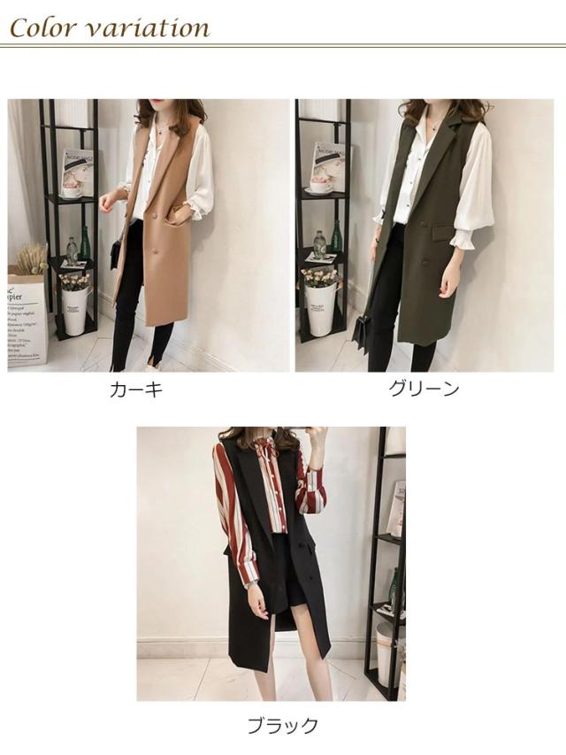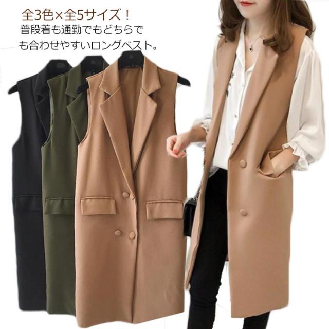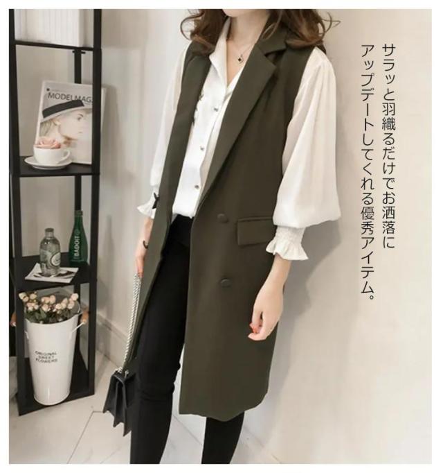 テーラードベスト ロングベスト レディース ライトアウター ノースリーブ コート 春 秋 前開き ジレ おしゃれ ジレベスト 大きいサイズ トップス 着回し カジュアル レイヤード 無地 通勤 オフィス OL シンプル 重ね着 20代 30代 40代 50代