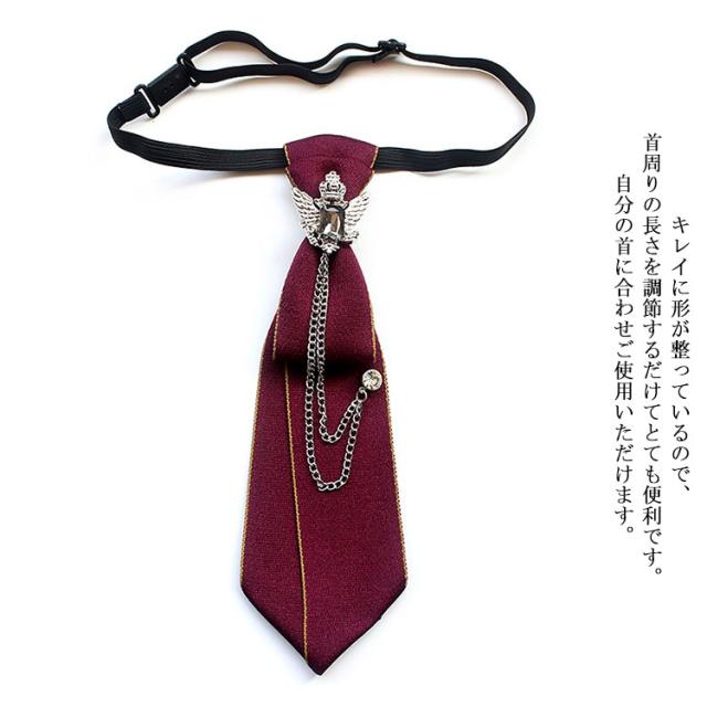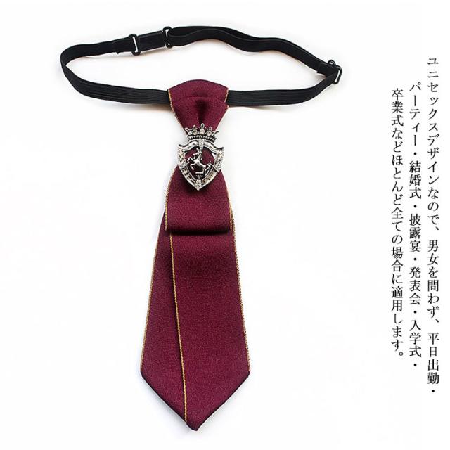 | 心地よい手触りの織り生地を使用し、一つ一つミシンで丁寧に仕上げられています。 キレイに形が整っているので、首周りの長さを調節するだけてとても便利です。自分の首に合わせご使用いただけます。 ネクタイを結ぶのが苦手な人にも、もっと気軽にネクタイスタイルを楽しみたい方にも最適!いつまでも結び目が美しく型崩れせず結ぶ手間もかけません。 ユニセックスデザインなので、男女を問わず、平日出勤・パーティー・結婚式・披露宴・発表会・入学式・卒業式などほとんど全ての場合に適用します。 | |