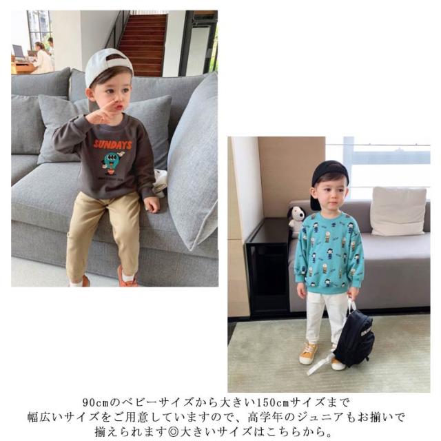 | 男の子・女の子共に着ていただけて、一枚あるとコーディネートの幅も広がります。 カラーによって雰囲気が異なり、いろんなスタイルにも合わせやすいのでデイリーウェアとして重宝します。 90cmのベビーサイズから大きい150cmサイズまで幅広いサイズをご用意していますので、高学年のジュニアもお揃いで揃えられます◎大きいサイズはこちらから。 | |