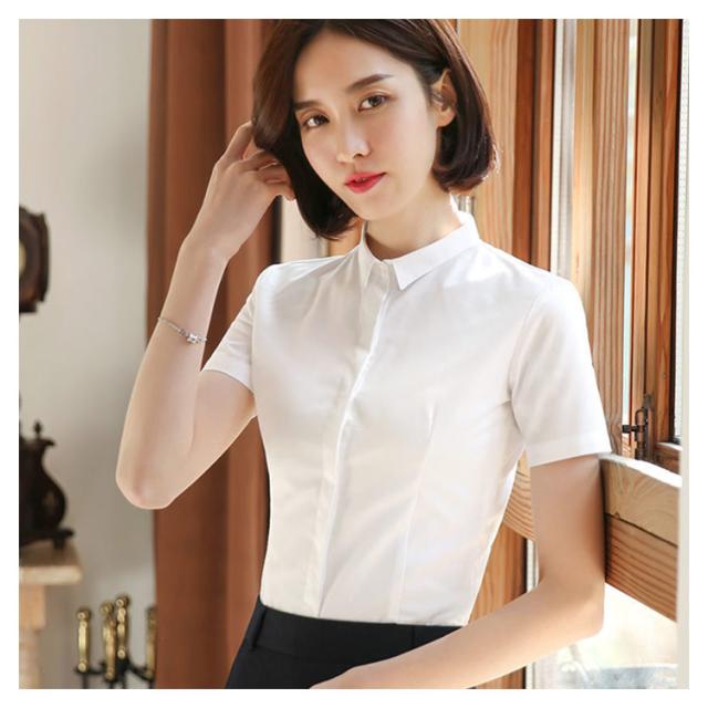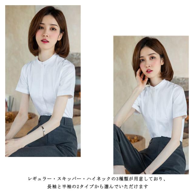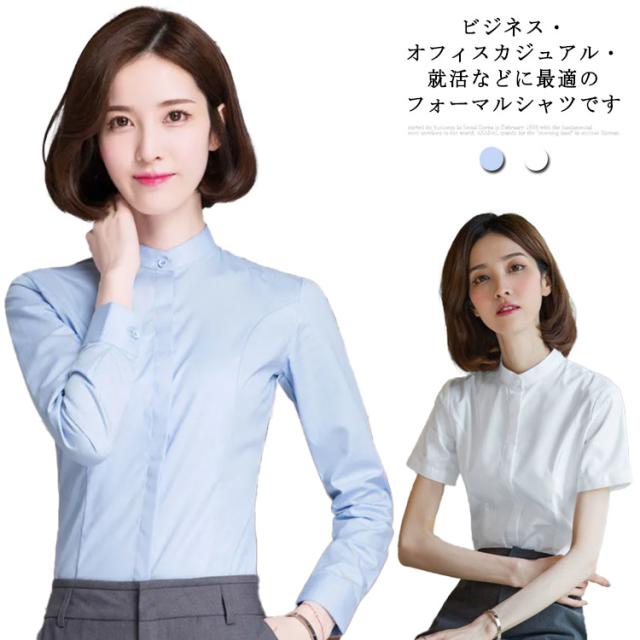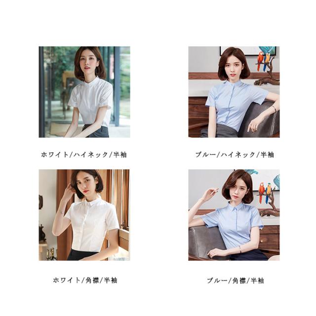 ブラウス ワイシャツ レディース 事務服 オフィス 開襟 ワイシャツ 白シャツ 長袖 半袖 無地 レギュラー スキッパー ハイネック シャツ 制服 ブルー ホワイト 送料無料 おしゃれ スリム ストレッチ 定番 ビジネス フォーマル OL 形態安定