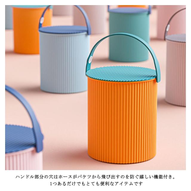 | カラフルで使い方無限大フタ付き万能バケツ。 波の形状が生み出す縦ラインでシンプルながら洗練されたデザインに仕上がっています。 フタがあるので簡易スツールにもなり耐荷重は100kgまで可。 収納BOX、ランドリーバスケット、野菜ストッカー、おもちゃ箱など、使い方自由! バケツとしてはもちろん、ちょっとした収納ボックスとして、レジャー・アウトドアなどのスツールとしてなど、さまざまなシーンで活躍してくれます。 ハンドル部分の穴はホースがパケツから飛び出すのを防ぐ嬉しい機能付き。 1つあるだけでもとても便利なアイテムです。 | |