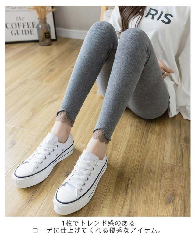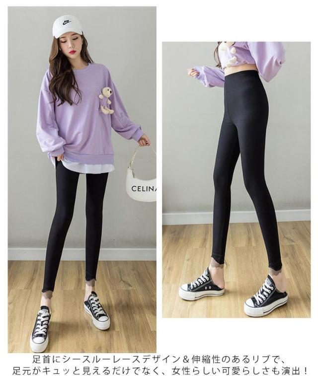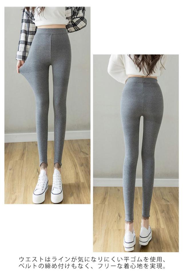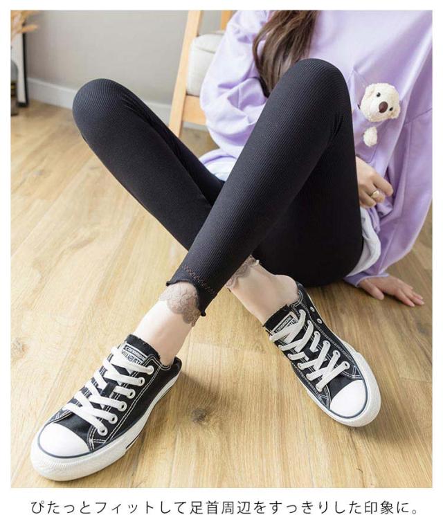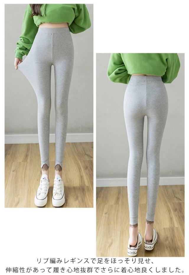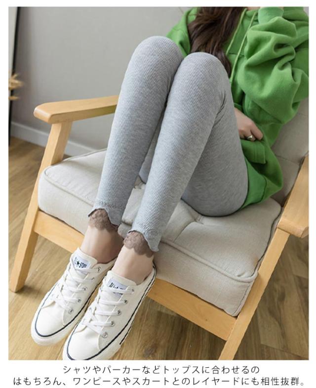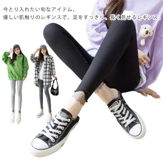 レギンス リブパンツ 全3色 リブレギンス レース切り替え タイツ 春 レース裾 レディース リブニットレギンス リブ フリル ストレッチ 秋 冬 リラックス スパッツ