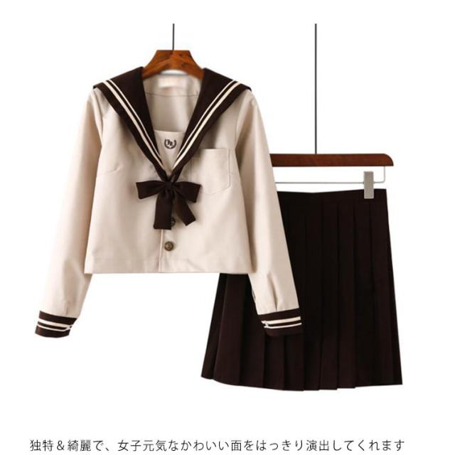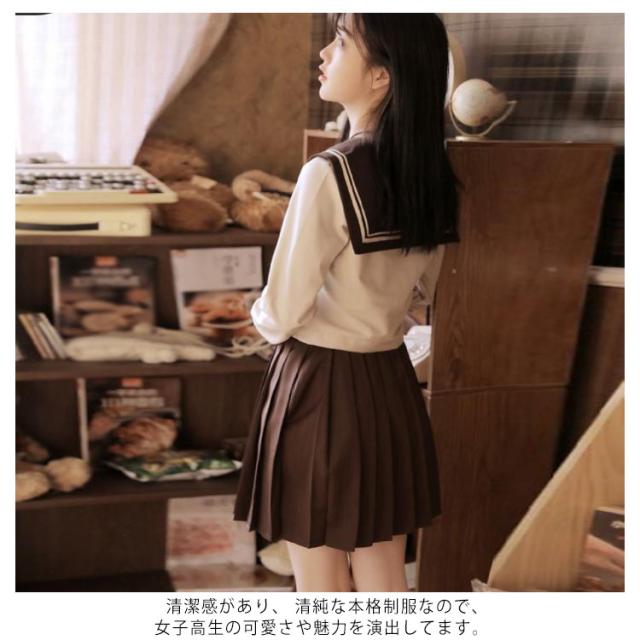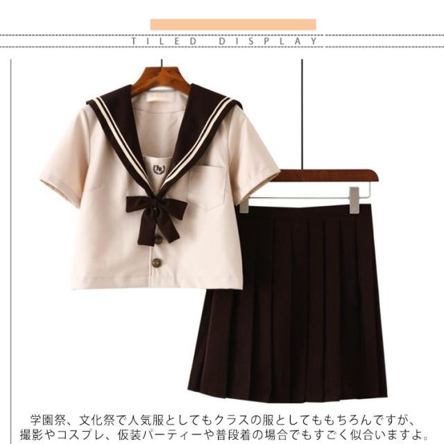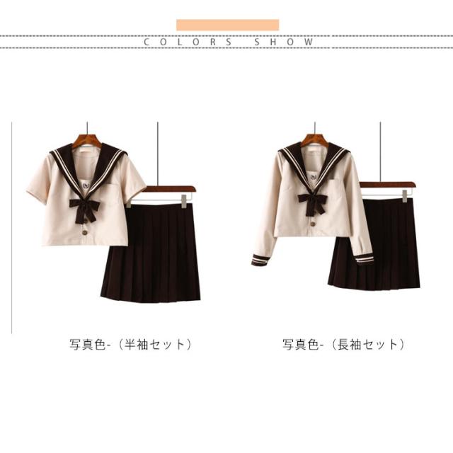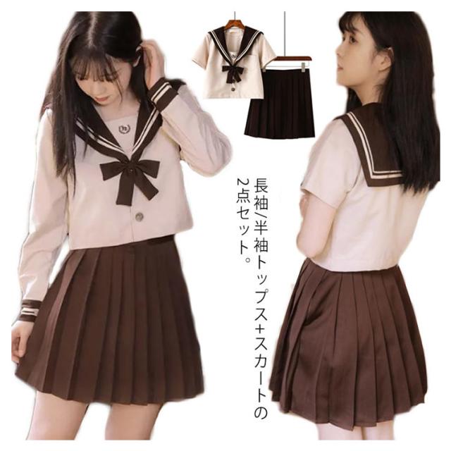 ソックスおまけ 衣装 レディース 上下セット 半袖 仮装 JK制服 学生服 コスチューム 茶色 長袖 可愛い プリーツスカート リボン セーラー服 高校生 コスプレ衣装 セーラー服 学園祭 大人 セクシー コスプレ