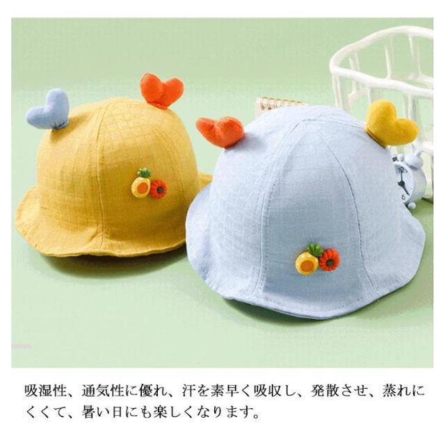 | 男の子、女の子でも着用していただけるかわいいベビーハットです。 大切なお子様を熱中症や紫外線などから守るため、かわいい帽子でしっかり対策。 吸湿性、通気性に優れ、汗を素早く吸収し、発散させ、蒸れにくくて、暑い日にも楽しくなります。 ベビーカーでのお出かけ、通園、通学、海水浴、ピクニック、登山、旅行などのアウトドア活動には大重宝。 | |