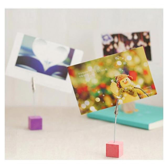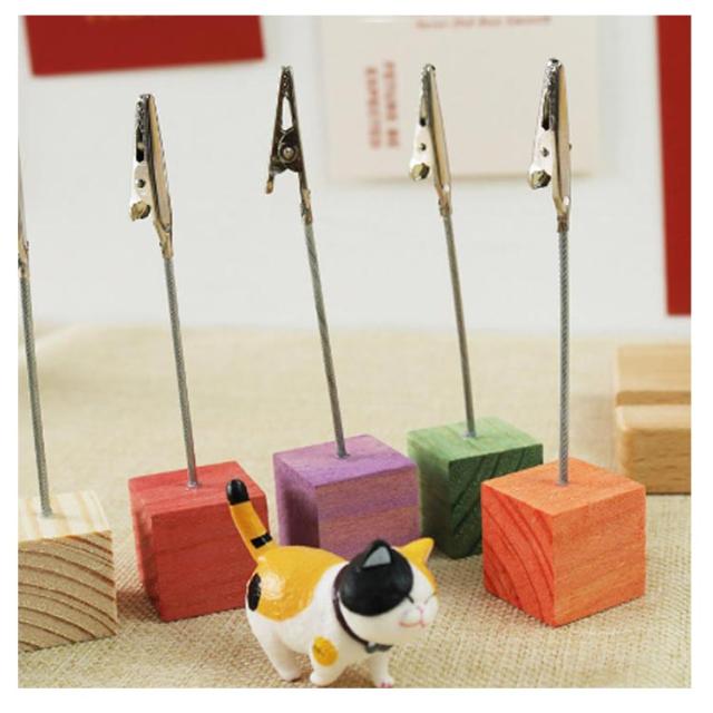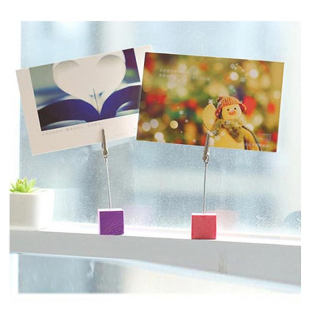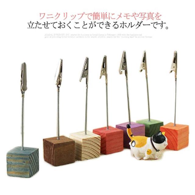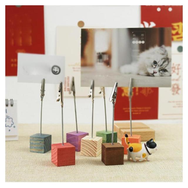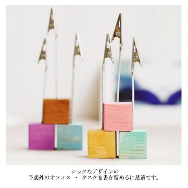 メモクリップ 写真立て 8個セッ 木製 カードホルダー 名刺 卓上用品 メモスタンド インテリア オフィス 自宅用 カラフル 文房具用