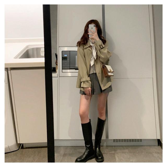 | 長さが選べるトレンチコート。 お仕事時から普段使いまで幅広く使える トレンチコート。 季節の変わり目に欠かせない一枚♪ 取り外し可能なベルト付きで、キュッと締めたらウエストが細く見える。 | |