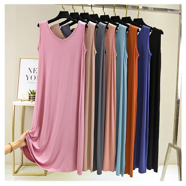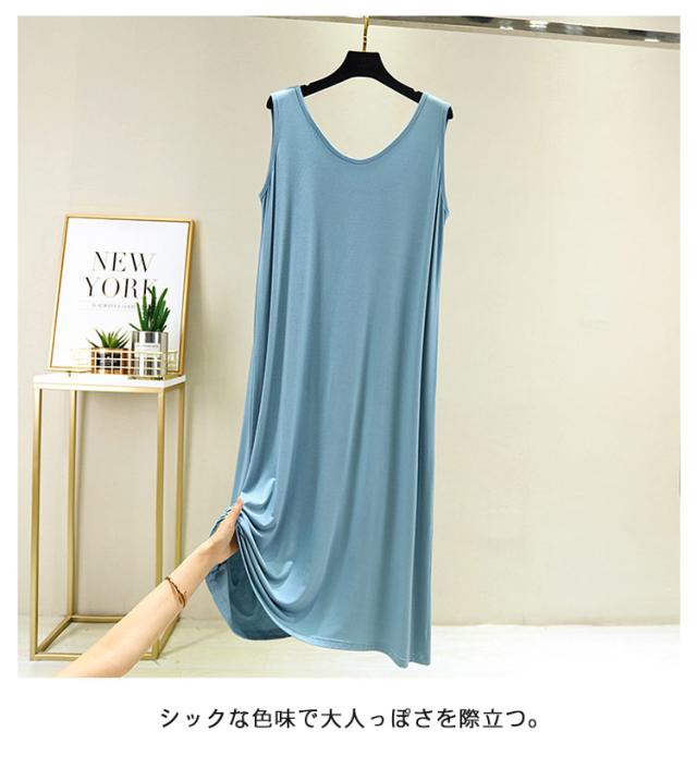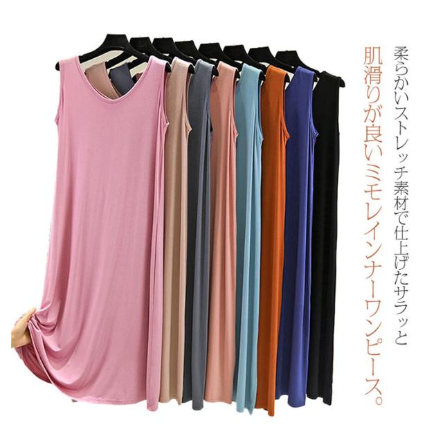 ワンピース レディース ミモレ丈ワンピース ロングワンピース インナーワンピース ノースリーブ 夏ワンピース カジュアルワンピース 膝下丈 Uネック 大人 シンプル 無地 レイヤード 部屋着 ルームウエア オシャレ ゆったり 春夏 送料無料