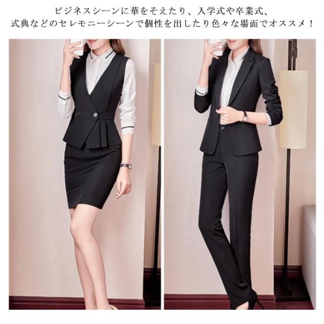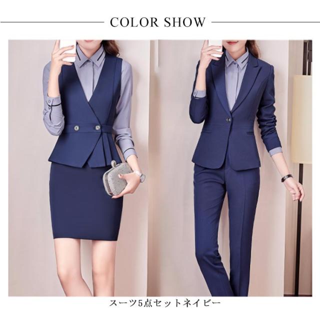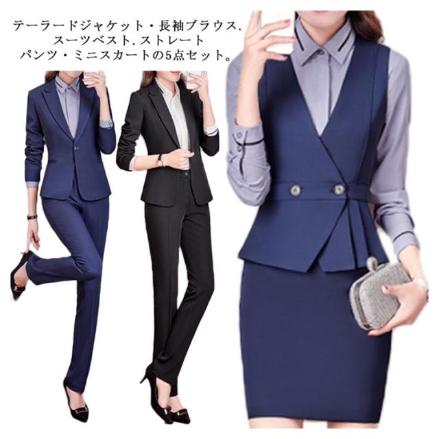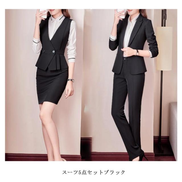 スーツ レディース ビジネス スカート パンツ シャツブラウス ベスト 5点セット スーツセット セットアップ ジャケット リクルートスーツ オフィス 仕事 通勤 大きいサイズ 洗える スリム 着痩せ ママスーツ 入園式 発表会 就職活動 オールシーズン 送料無料