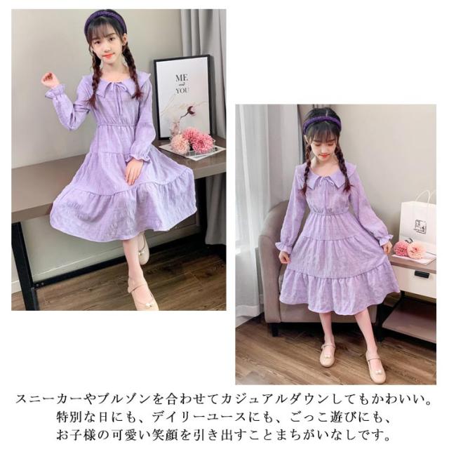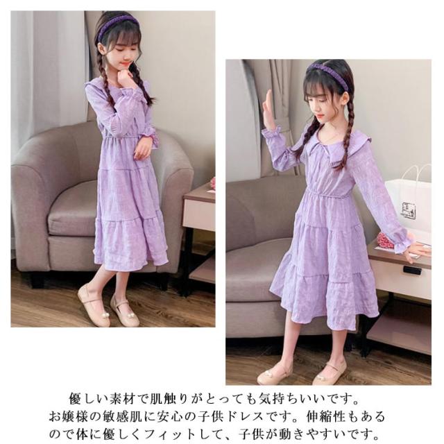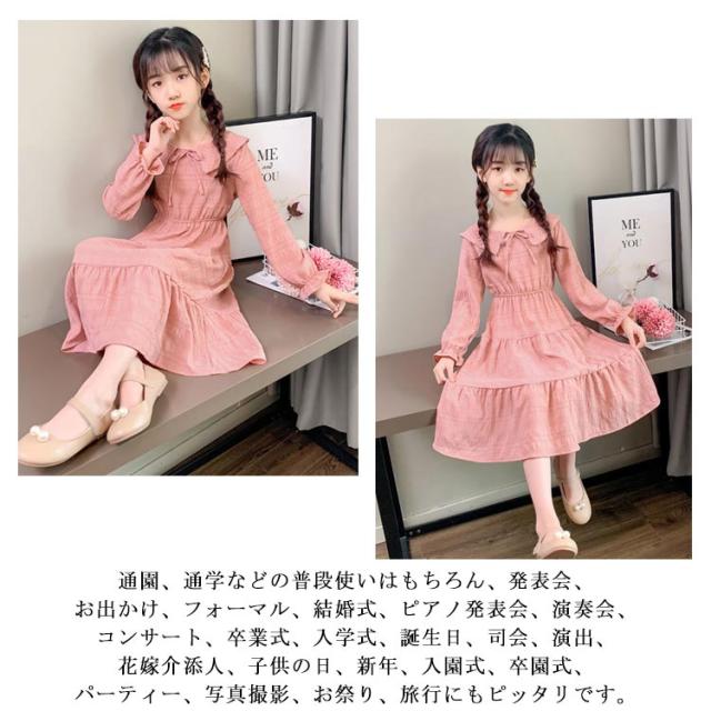 送料無料 子供服 ワンピース 子供 ドレス 長袖 フレアワンピース 膝丈ワンピース フリル パジャマ 部屋着 お姫様 七五三 ダンス パーティー 入学式 発表会 110 120 130 140 150 160 170